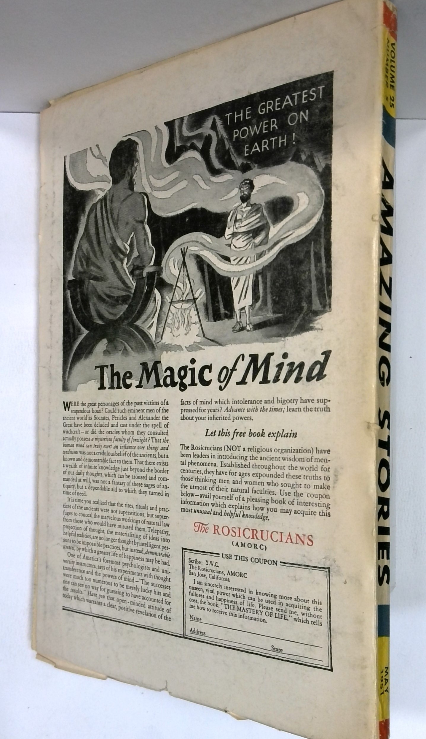 Volume 25, Issue 5 - May, 1951. Cover by Robert Gibson Jones. Science fiction stories by Lawrence Chandler, Graham Doar, V.E. Thiessen, Burt B. Liston, Rog Phillips, and H.B. Hickey. Illustrations by Virgil Finlay, Leo Ramon Summers, Rod Ruth, Robert Gibson Jones, W.H. Hinton, and Julian Krupa. 7-in. x 10-in.; black and white; 160 newsprint pages. Cover price $0.25.