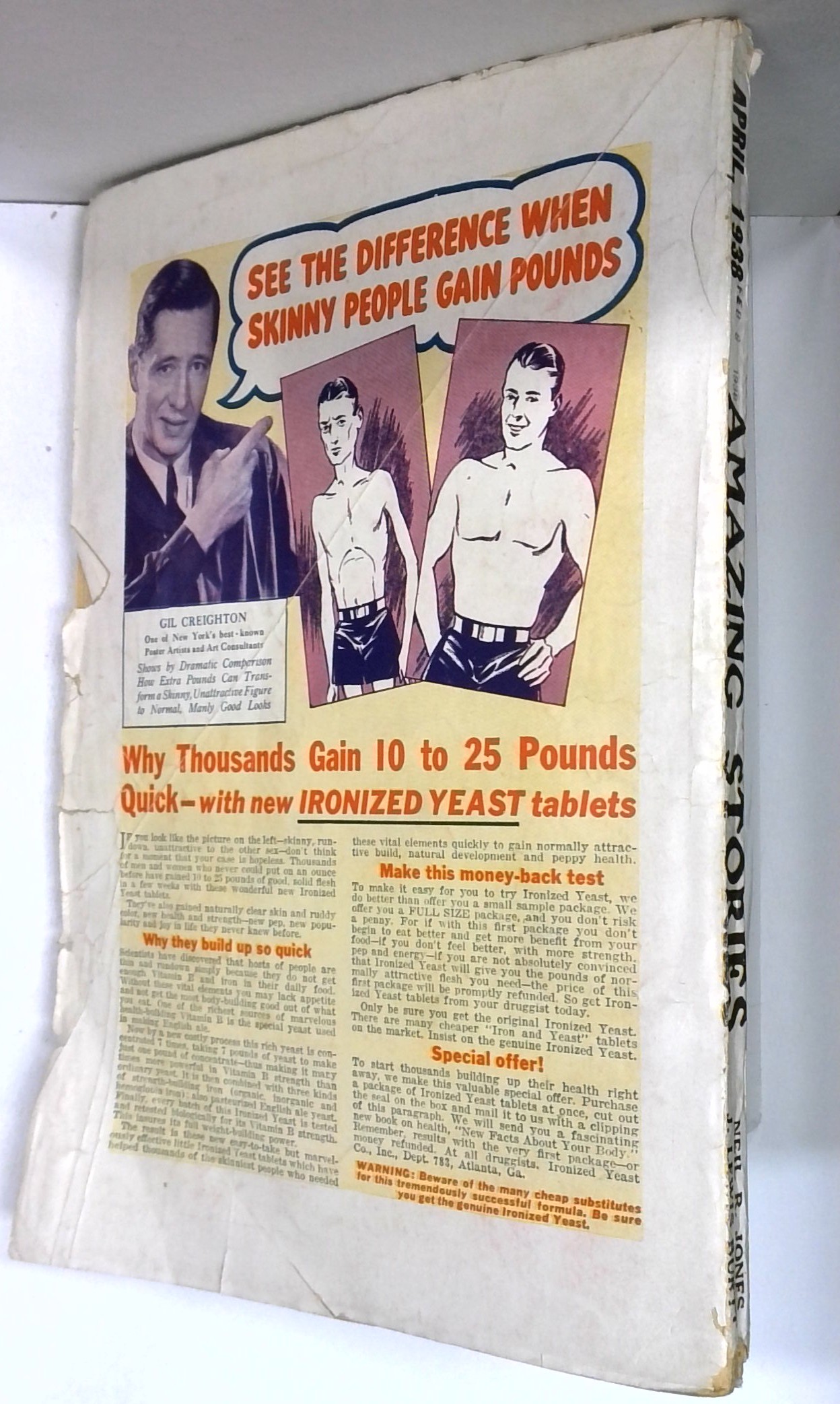 April 1938. Cover and illustrations by Leo Morey. Science fiction stories by John Russell Fearn, Neil R. Jones, J. Lewis Burtt, and Edward Carlisle. 7" x 10".; black and white with color cover; 144 newsprint pages. Cover price $0.25.