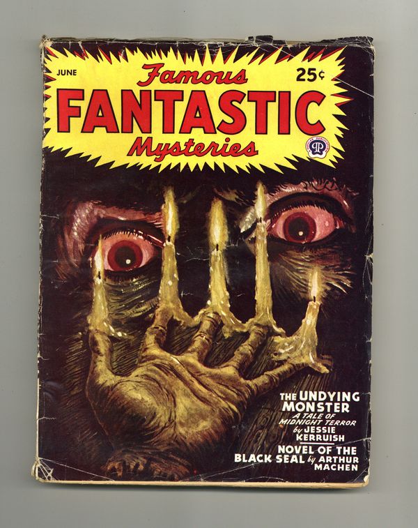 June 1946. Cover and illustrations by Lawrence. "The Undying Monster" by Jessie Douglas Kerruish, and "The Novel of the Black Seal" by Arthur Machen. Softcover Pulp, 7-in. x 9 1/2-in.; 130 Pages, B&W. Published by Popular Publications Cover price $0.25.