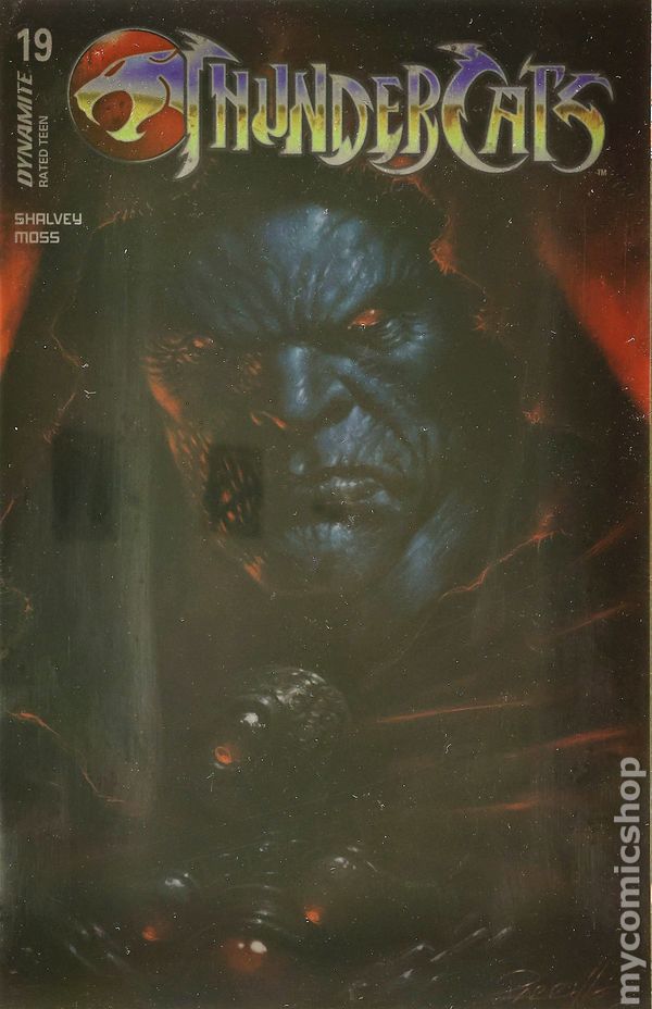 (W) Declan Shalvey (A) Drew Moss (CA) Ken Haeser THE TURNING OF THE TIDE! In this electrifying issue, the escalating clash of wills between the ThunderCats of the Cat's Lair and the Knights of Thundera finally comes to a head - and the ultimate destiny of all the Thunderans on Third Earth hangs in the balance! Master dramatists DECLAN SHALVEY and DREW MOSS let slip the 'Cats of War in ThunderCats #19 - commemorated by captivating covers from MOSS, SHALVEY, LUCIO PARRILLO, JAE LEE & JUNE CHUNG, and MANIX! 32 pages, full color, rated teen. Cover price $4.99.