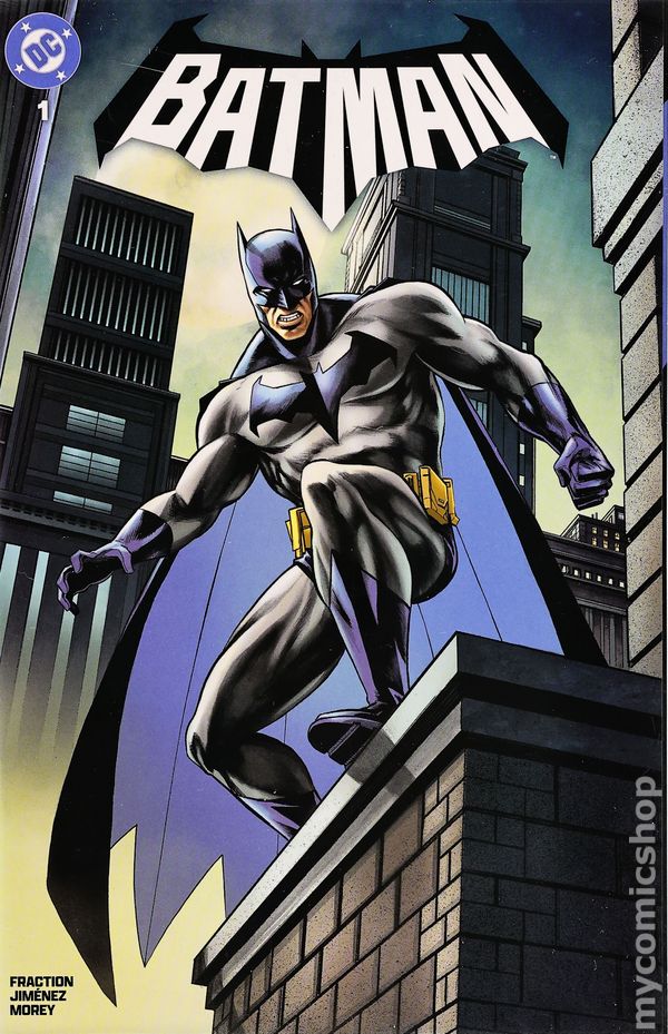 Secret Identity, Dungeon Comics and Cards, and Eclectables Exclusive Variant Cover by Mike Rooth. Written by Matt Fraction. Art by Jorge Jimenez. A BOLD NEW ERA OF BATMAN STARTS HERE! A new day dawns for the Dark Knight Detective as Eisner Award-winning writer Matt Fraction (Hawkeye, Superman's Pal Jimmy Olsen) joins forces with superstar artist Jorge Jimenez (Batman, Summer of Superman Special) for an unforgettable new era of Batman! The best superhero in comics gets a brand-new first issue to kick off this new era that will test Batman and Bruce Wayne like never before! 40 pages, full color. Rated T+