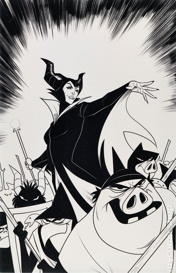 Blind Bag Exclusive B&W Virgin Cover by Robert Quinn. Story by Paulina Ganucheau. Art by Theo Stultz. JOURNEY INTO DARKNESS! The Queen of the Forbidden Mountain returns for an all-new tale of villainy crafted by writer PAULINA GANUCHEAU and artist THEO STULTZ! Set in the time just after the vengeful Maleficent leveled her curse against Princess Aurora, this hypnotic new adventure follows the power-hungry regent as she sets out to build up her arsenal of magical energy to the point that she will be invulnerable to any force that would dare challenge her reign. When her goblin minions return from a raid against a neighboring kingdom bearing a mysterious glowing grimoire, the Queen senses an ancient and otherworldly presence between its covers — a force that could deliver to her a new wellspring of nearly unlimited power. To take possession of it, however, she must leave the safety of her kingdom and venture into an unfamiliar and dangerous realm — a place from which few humans ever return! Featuring darkly beautiful covers by PAULINA GANUCHEAU, ELLERY SANTOS, ROBERT QUINN, and THEO STULTZ, Disney Villains: Maleficent Vol. 2 #1 adds a new layer of complexity to one of Disneys most compellingly sinister antagonists! 32 pages, full color, rated teen.