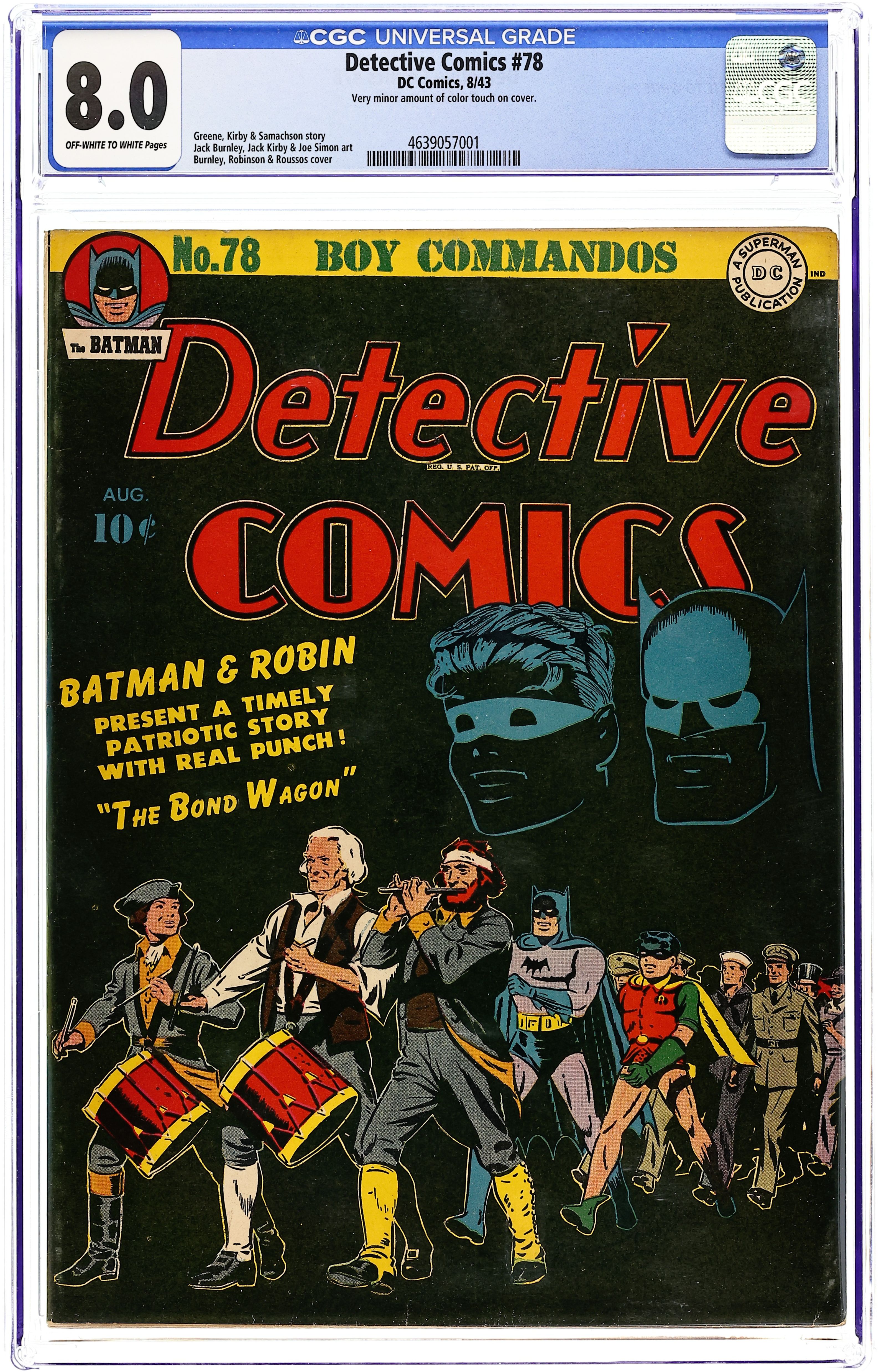 Cover by Dick Sprang. Stories by Don C. Cameron, Jack Farr and unknown. Art by Jack Burnley, Charles Paris, Jack Farr, Howard Sherman, George Roussos and Louis Cazeneuve. Batman and Robin must stop a group of crooks who operate a gem smuggling operation out of the out-of-the-way home of a mystery writer without his knowledge in "The Crow's Nest Mystery!" by Don C. Cameron, Jack Burnley and Charles Paris. Plus: Three-Ring Binks in an untitled story by Jack Farr; Slam Bradley in "Fools about Jewels!" with art by Howard Sherman; Air Wave in "The Living Statues!" with art by George Roussos; and The Boy Commandos in "The Mischievous Mr. McGonigle!" with art by Louis Cazeneuve (not by Simon and Kirby, despite the listed credits). Also: Casey the Cop 1-pager by Henry Boltinoff, and 2-page text story "Masquerade" by Jack Miller (as Jesse Merlan). 52 pages, full color. Cover price $0.10.