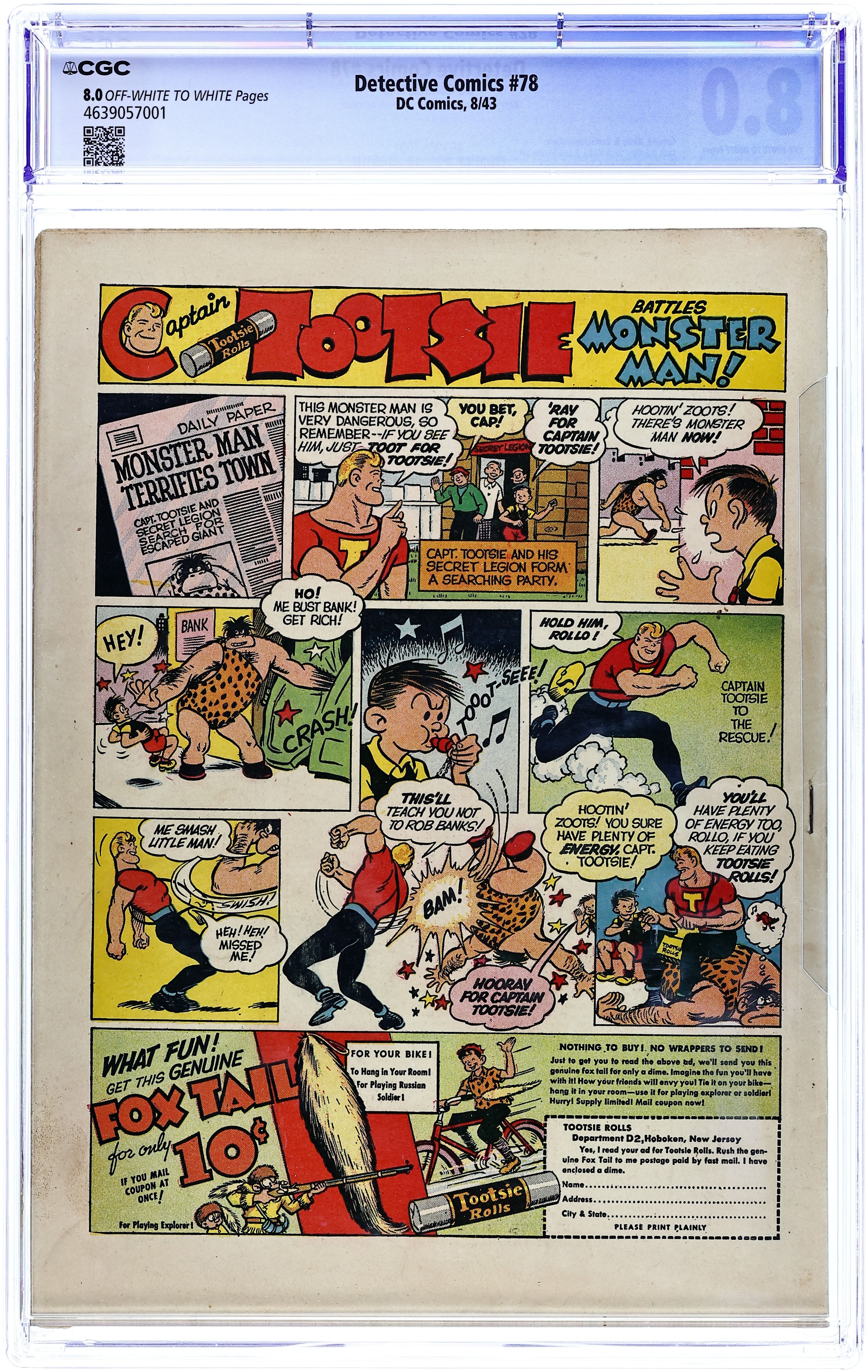 Batman and Robin in "The Bond Wagon," Slam Bradley in "The Meanest Muggs in the World," the Crimson Avenger in "Tjhe Prevue Murders" (by Jack Lehti), Air Wave in "Menace of the Mouse-Traps" (art by George Roussos), and Boy Commandos in "Freedom Station" (by Joe Simon and Jack Kirby). Half-page ad for Boy Commandos # 3/Batman # 18. A full-page ad features Leading Comics # 7, Green Lantern # 8, Wonder Woman # 5, All-Flash # 11, and All Star Comics # 17. Back cover Tootsie Roll ad, "Captain Tootsie Battles Monster Man!" 60 pgs. Cover price $0.10.