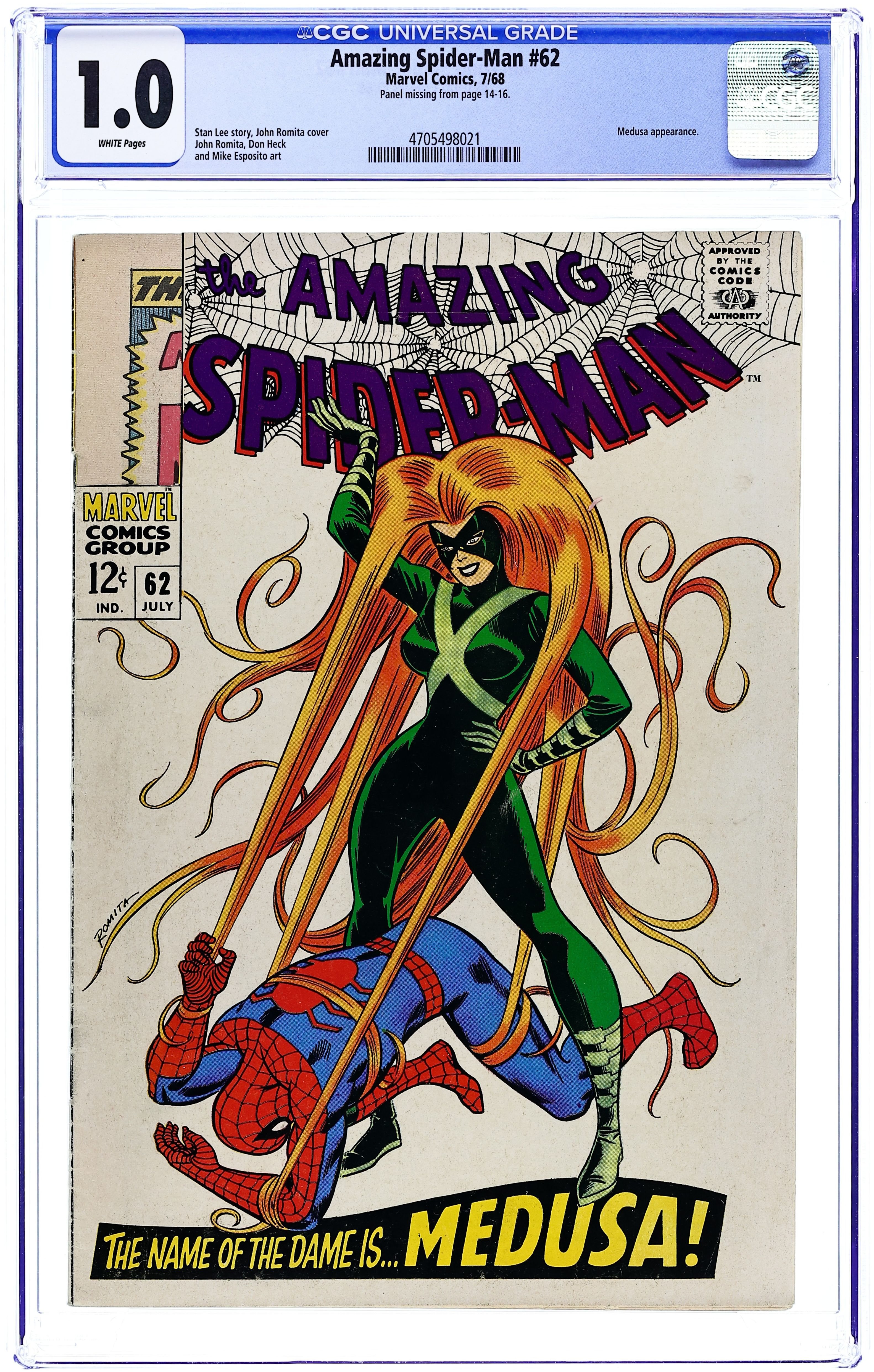 Tags: Marvel Legacy Numbering: Amazing Spider-Man (part 62), Spider-ManAmazing Spider-Man (1963 1st Series) 62 CGC 1.0