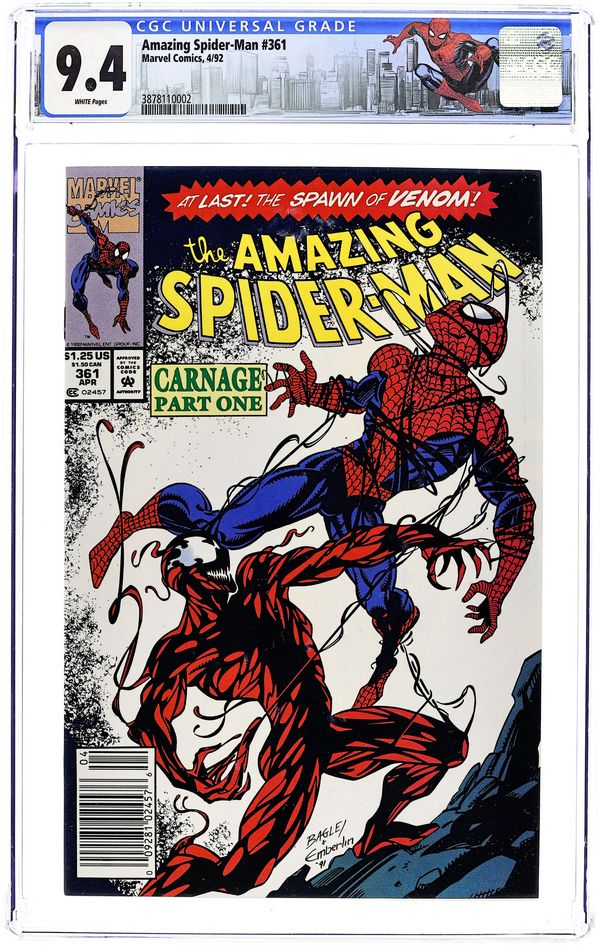 Tags: Marvel Legacy Numbering: Amazing Spider-Man (part 361), Spider-ManAmazing Spider-Man (1963 1st Series) 361A CGC 9.4 JSA Bagley 1st Printing