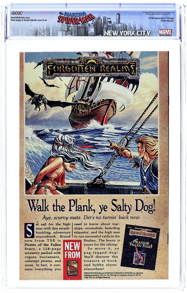 Ends Apr 27 7:16 PM CST Bid History 5 bids Current Bid $12 Your Secret Max Bid If you'd like to bid, please log in or register. Newsstand Edition. First appearance of Cletus Kasady aka Carnage in "Hearts and Powers." Script by David Michelinie. Pencils by Erik Larsen. Inks by Randy Emberlin. Cover by Erik Larsen and Randy Emberlin. In a warehouse on the waterfront, the Spectacular Spider-Man runs into a new costumed crusader...Cardiac! Is he a hero or villain or vigilante or all of the above? After a brief confrontation, the web-slinger isn't quite sure! But later on, at a chemical plant in the Bronx, Cardiac and the wall-crawler are forced to team up to tackle the rampaging Rhino! So, Spidey will consider Cardiac a friend...for now! Meanwhile, in Ryker's Island, Eddie Brock gets to know his new cellmate: Cletus Kasady...the future Carnage! Cameo appearances by Justin Hammer and Mary Jane Watson. 36 pages. $1.00 cover price. Cover price $1.00.