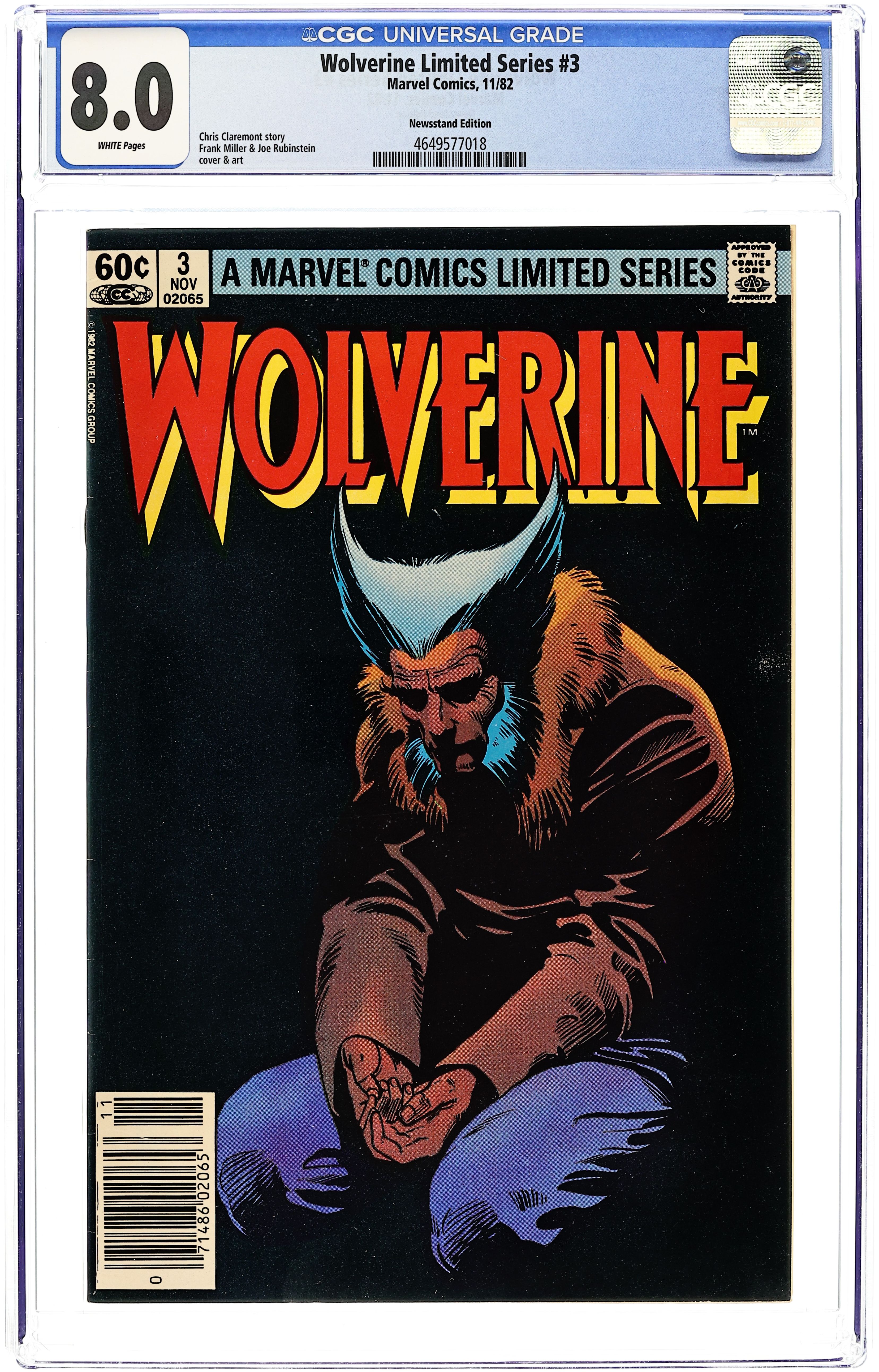 Newsstand Edition. Wolverine's Japanese adventure concludes in "Honor." Script by Chris Claremont, pencils by Frank Miller, inks by Joe Rubinstein. Miller/Rubinstein cover. Cover price $0.60.
