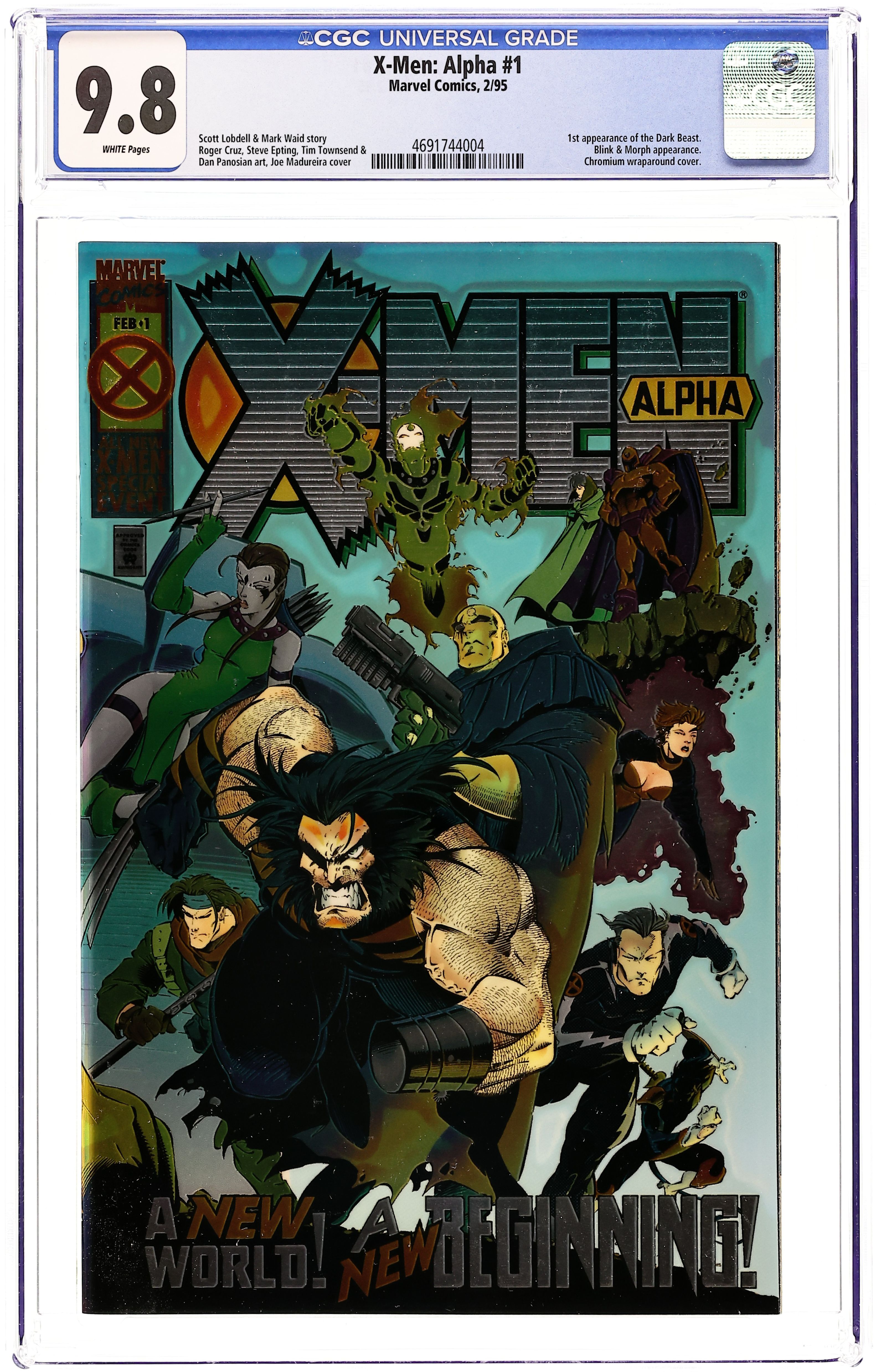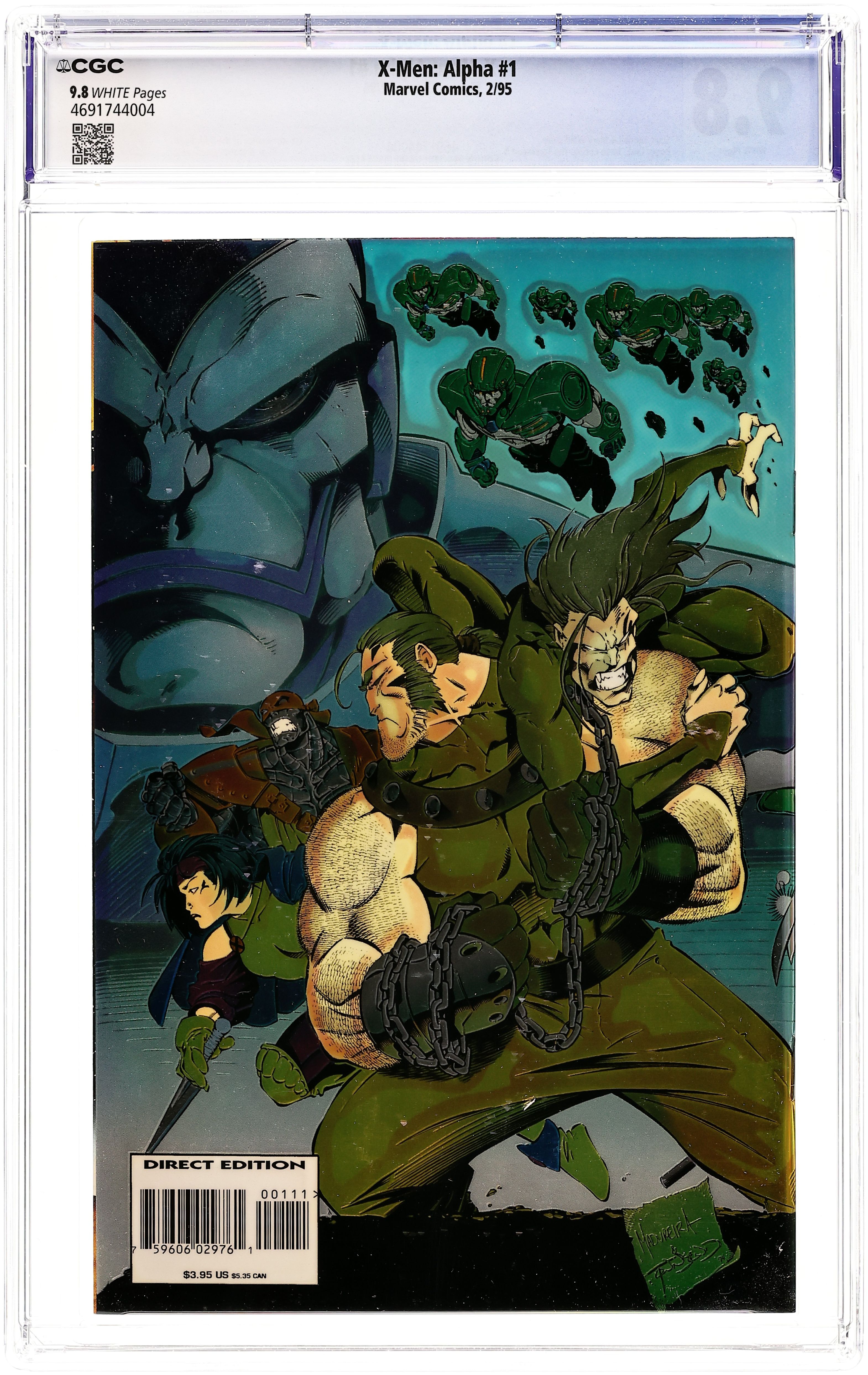 First Printing. Direct Edition. "Age of Apocalypse storyline". This is the first printing with a $3.95 cover price and a chromium cover. Written by Scott Lobdell, art by Cruz, cover by Joe Madureira. Cover price $3.95.