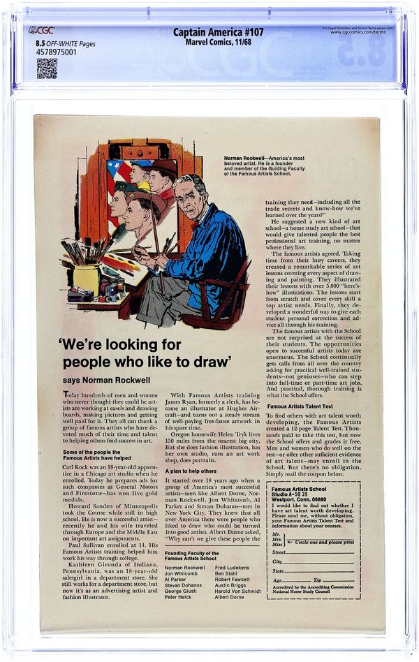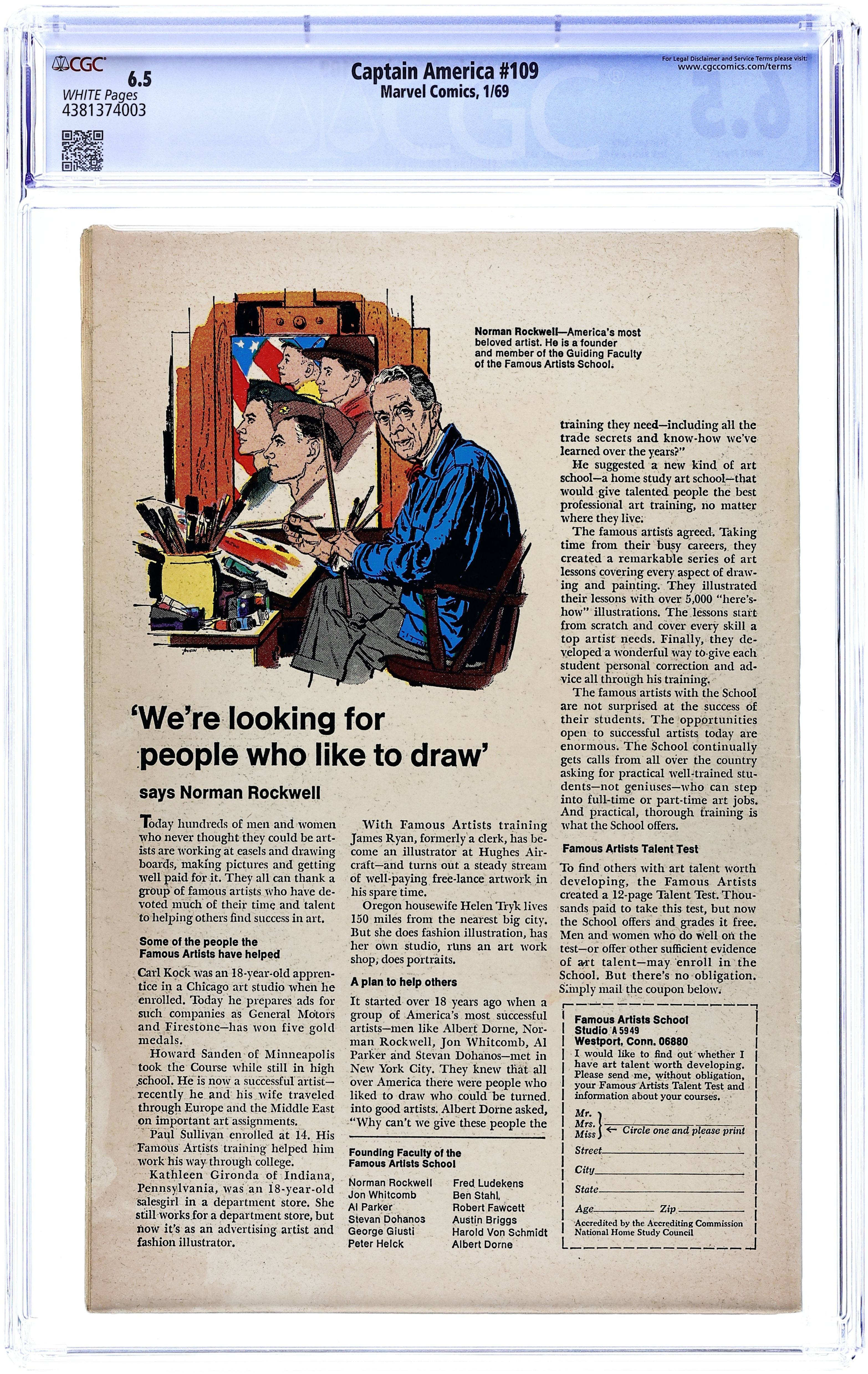 Tags: Marvel Legacy Numbering: Captain America (part 109), Captain AmericaCaptain America (1968 1st Series) 109 CGC 6.5