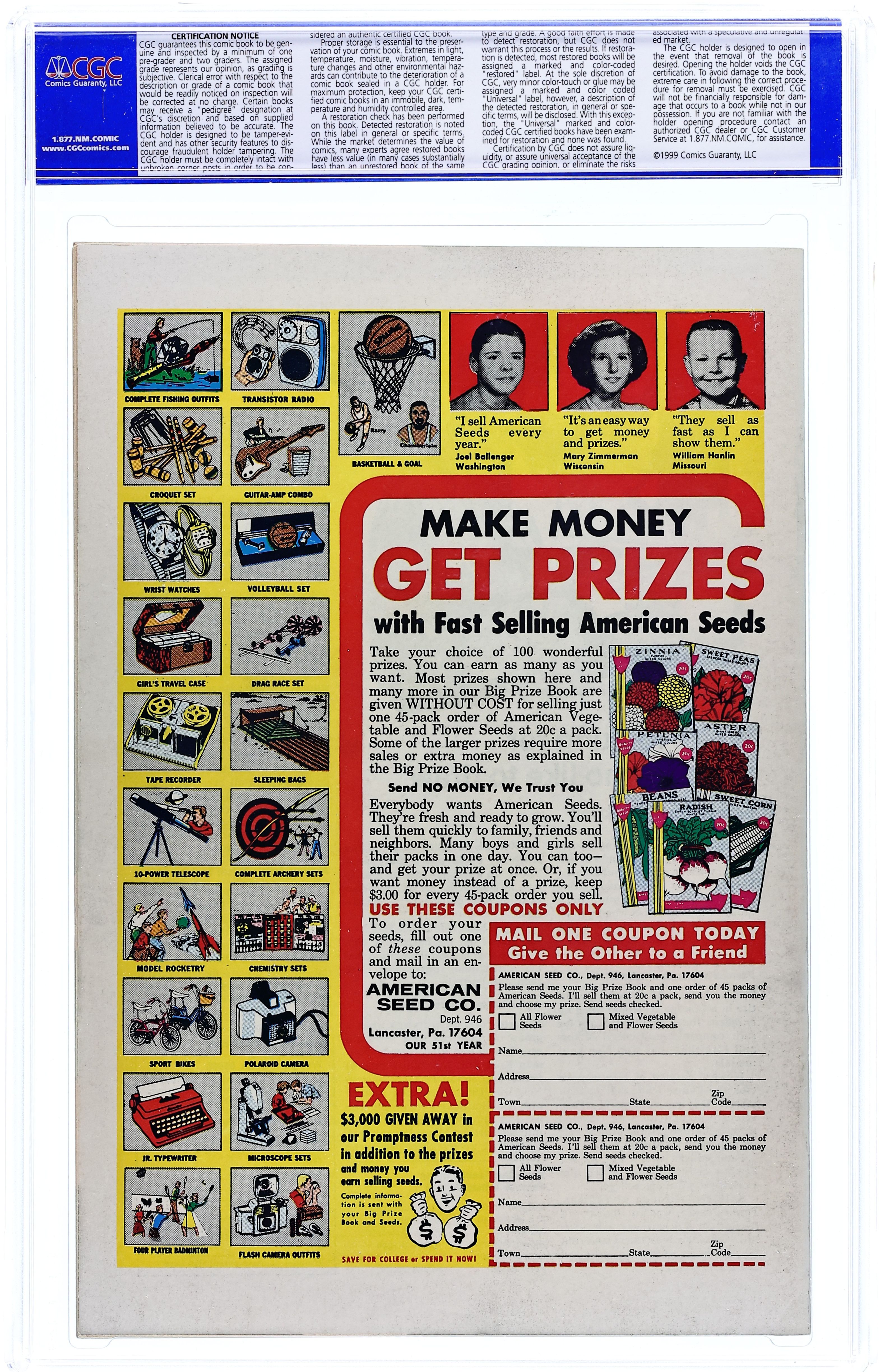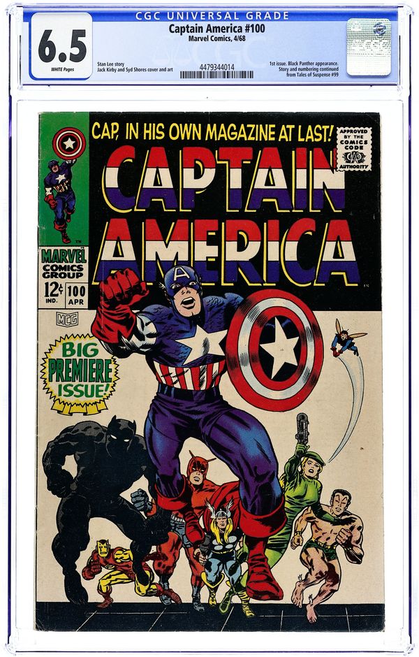 Ends Feb 23 7:43 PM CST Bid History 6 bids Current Bid $57 Your Secret Max Bid If you'd like to bid, please log in or register. 1st printing. Cover pencils by Jack Kirby, inks by Syd Shores . "The Hero That Was!", script by Stan Lee, pencils by Jack Kirby, inks by Syd Shores; Captain America tells Nick Fury his origin, and about how guilty he is over Buckys death; During WWII, Steve Rogers applied for the military, but couldnt pass the physical; He enters a program and is given super soldier formula, which makes him bigger and stronger; Cap battles a Nazi. Letter to the editor from comics writer Don McGregor. NOTE: JC Penney reprint exists with a Stridex ad on the back cover and Marvel Legends AF reprint exists with Red/White Marvel logo in the bottom right corner of front cover. 36 pgs., full color. $0.12. Cover price $0.12.