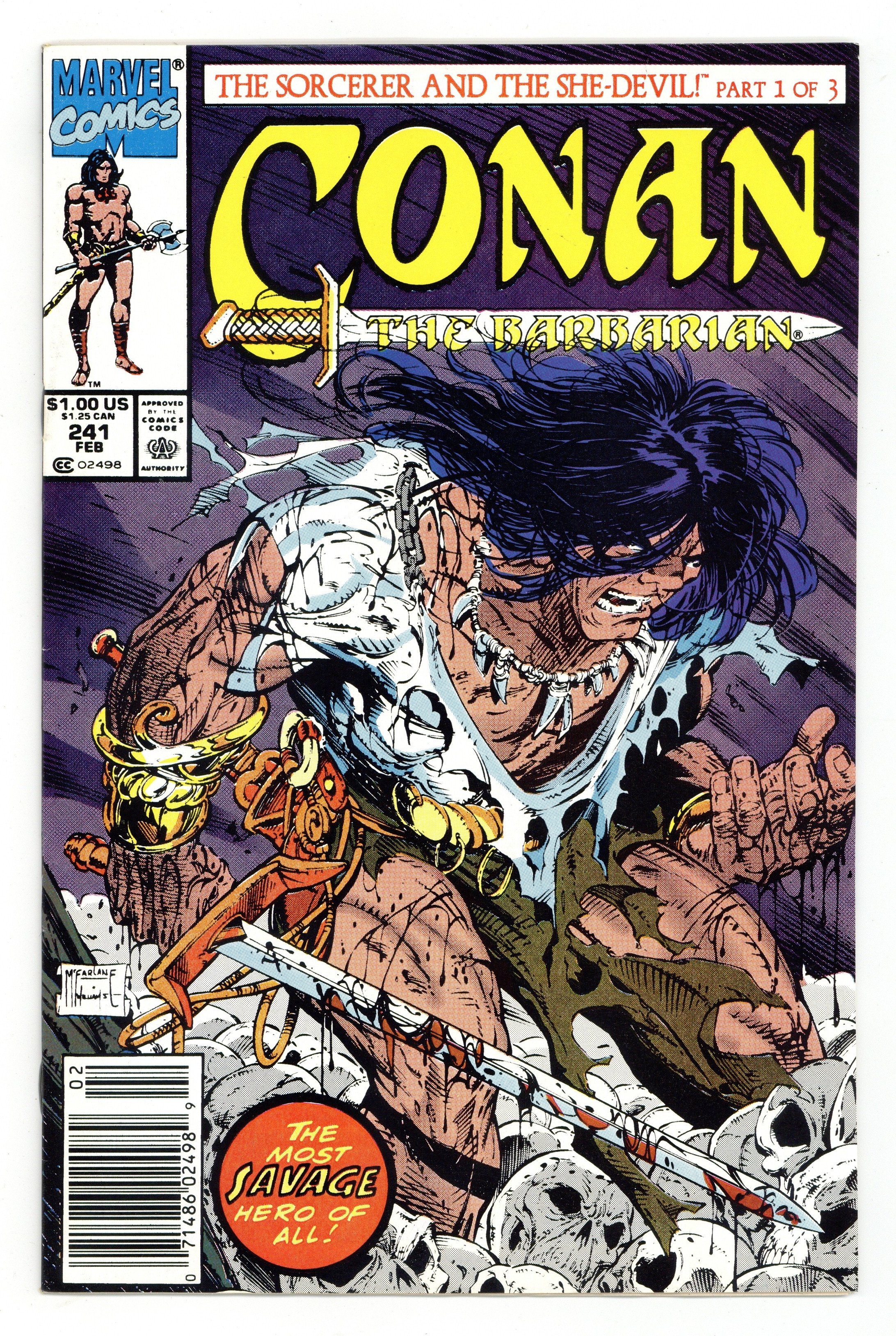 Starts Feb 2 Newsstand Edition. Cover pencils by Todd McFarlane, inks by Scott Williams. All Roads Lead To Zamora, script by Roy Thomas, pencils by Gary Hartle, inks by Mike DeCarlo; Red Sonja is getting married, and Conan is anything but the best man when he suspects sorcery, and not love, is her motivation. 36 pgs. Cover price $1.00. Cover price $1.00.
