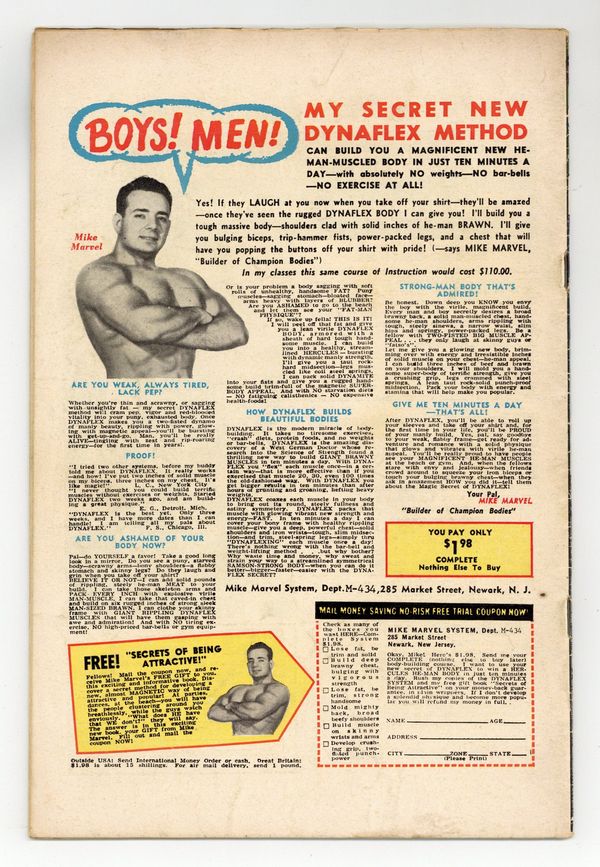 Cover pencils by Jack Kirby, inks by Dick Ayers. Third Silver Age appearance of the Sub-Mariner in "The End of the Fantastic Four!", script by Stan Lee, pencils by Jack Kirby, inks by Dick Ayers; The Fantastic Four are bankrupt and the Sub-Mariner is scheming to use this. How the Human Torch Flies! character profile. Part 2 Sub-Mariner Gives the Orders!; The Sub-Mariner offers the Fantastic Four one million dollars if they star in a film that he's producing. Part 3 "The Fury of Mr. Fantastic"; Mr. Fantastic discovers that the film project is a setup. Part 4 "The Flame of Battle"; Human Torch and Thing discover that the film project is a setup. Vengeance Is Ours! Part 5; The film is produced and an unwilling Sub-Mariner pays the Fantastic Four their money. Letter to the editor from MyComicShop president Buddy Saunders! 36 pages, full color. Cover price $0.12.