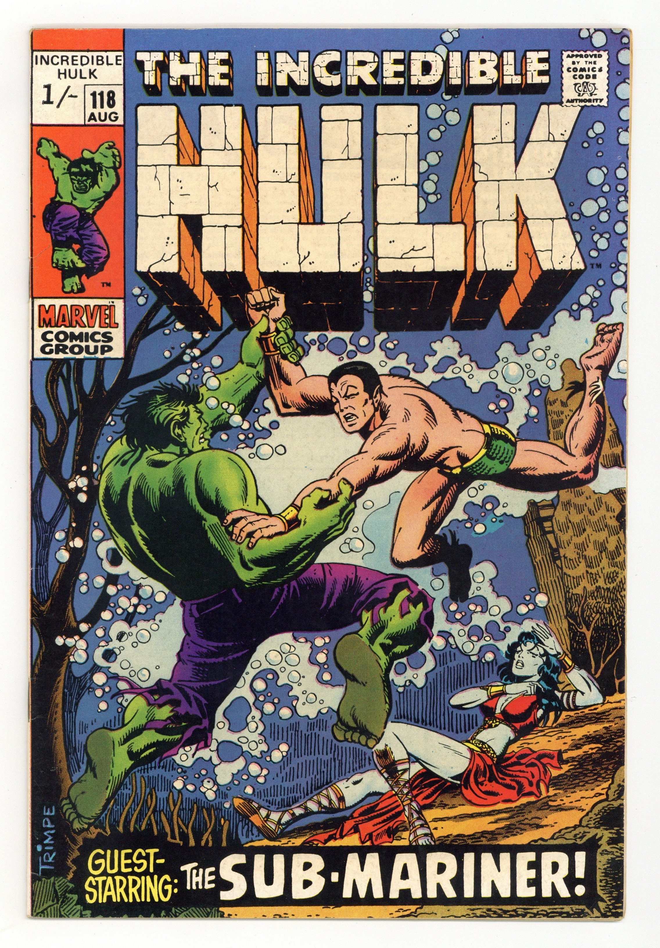 Starts Mar 16 UK edition. Identical to US edition, but has 1/- cover price. Cover art by Herb Trimpe. A Clash of Titans, script by Stan Lee, art by Herb Trimpe; Dorma finds Bruce Banner floating in the ocean and brings him down to Atlantis where, inevitably, the Hulk and the Sub-Mariner battle. 36 pgs.
