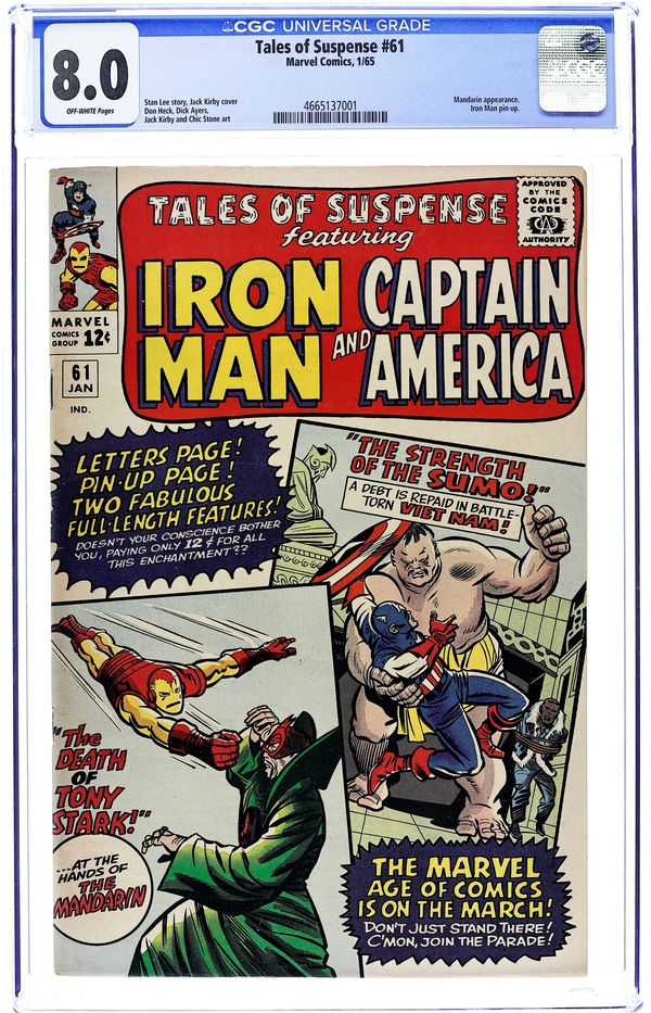 Tags: Marvel Legacy Numbering: Captain America (part 61), Marvel Legacy Numbering: Tales of Suspense (part 61), Captain America, Iron ManTales of Suspense (1959) 61 CGC 8.0