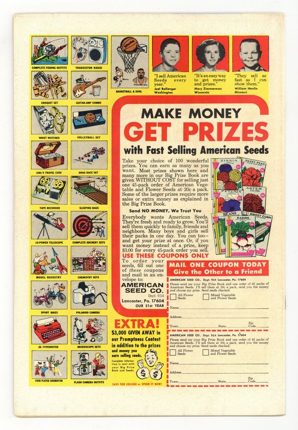 Starts Apr 4 The Justice Society of America star in "The Strange Lives of Edmund Blake!" Script by John Broome, pencils by Arthur Peddy (splash page and chapters 1 and 3) and Irwin Hasen (chapter 2), inks by Bernard Sachs (splash and chapters 1 and 3) and Bob Oksner (chapter 2). Back-up Johnny Peril's Surprise Story, "The Littlest Planet!" Two-page article, "Frontier Surgeon," about Ephraim McDowell, by William Irwin. Peddy/Sachs cover. 52 Pages, Full Color. Cover price $0.10.