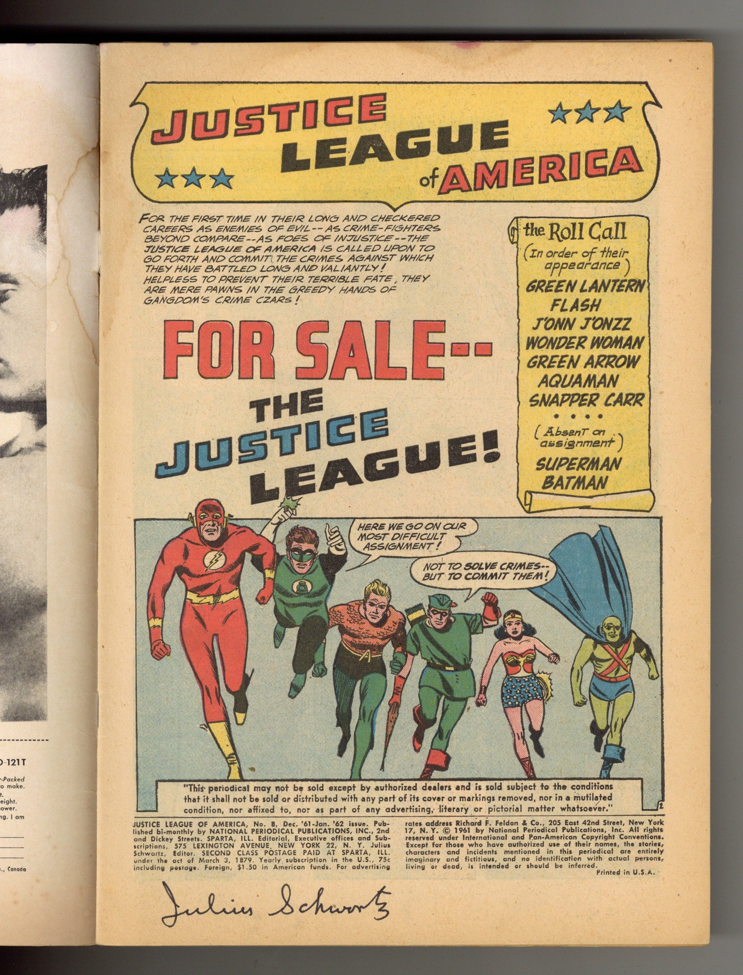 Signed by Julius Schwartz (splash), certification is not included.