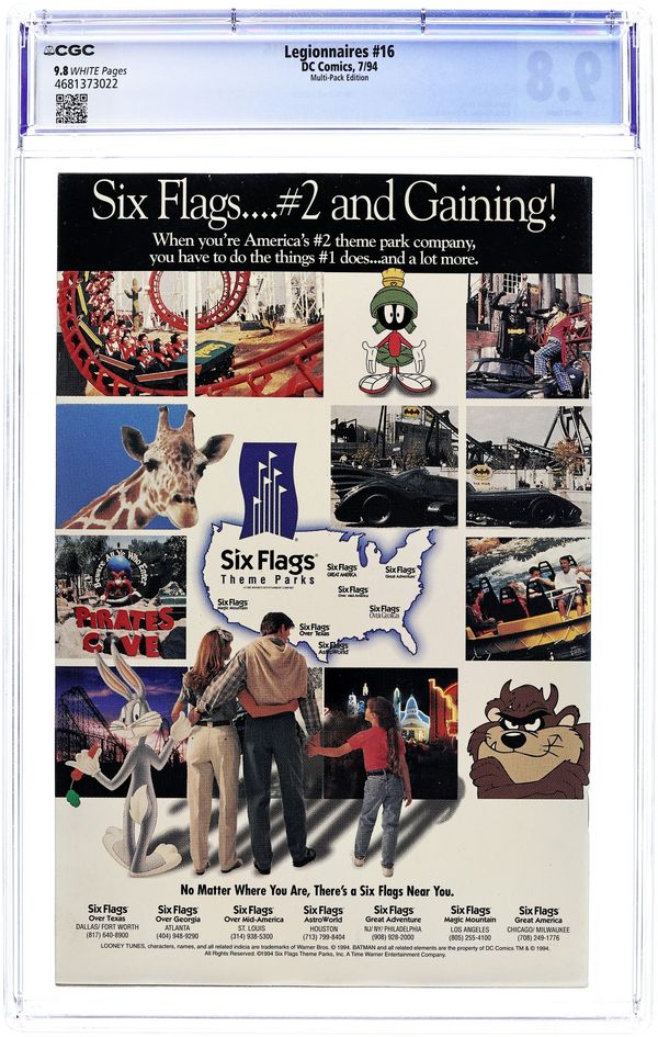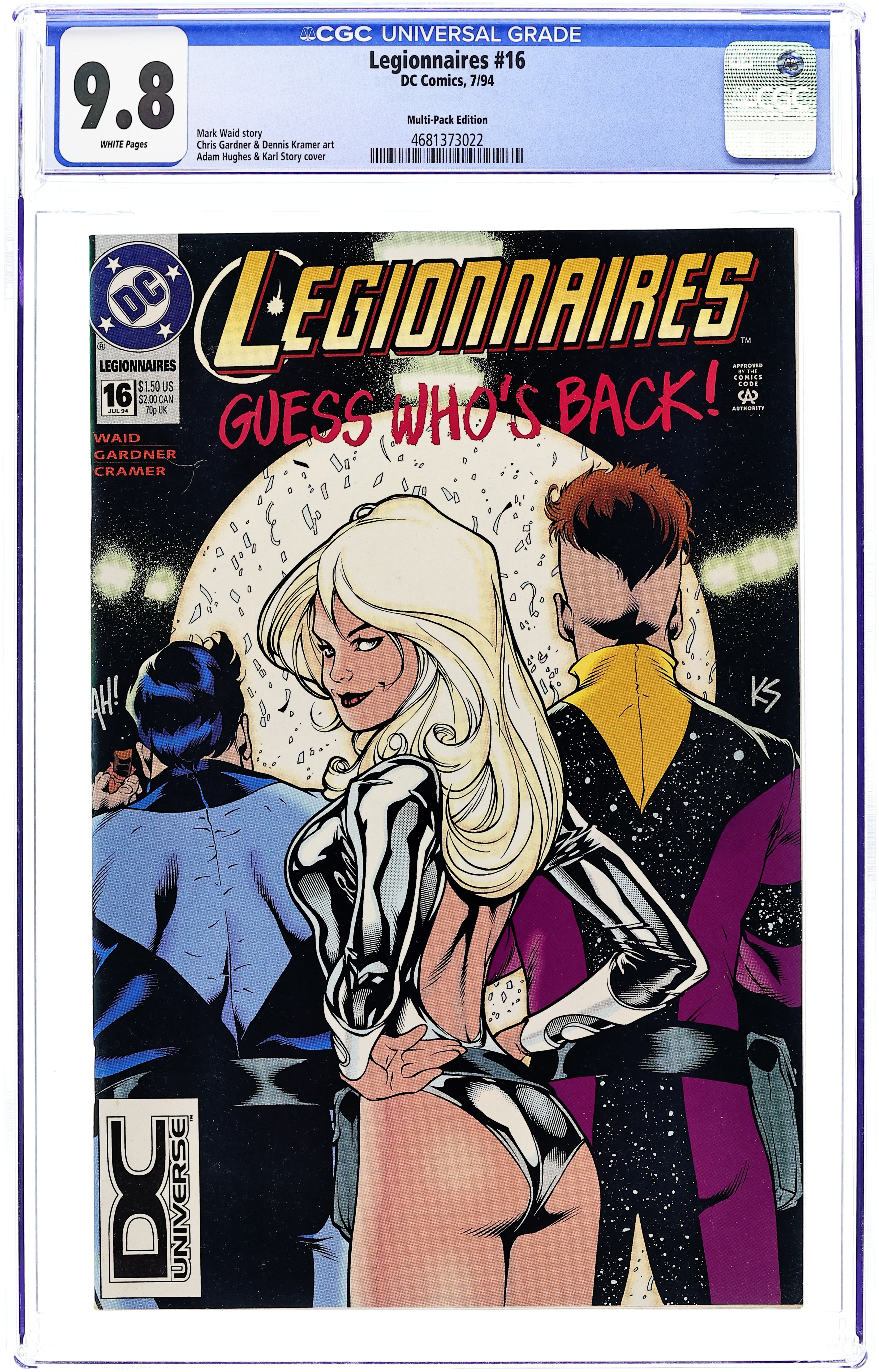 Multi-Pack "DCU" UPC Edition. Written by Mark Waid, with art by Chris Gardner and Dennis Cramer. Cover by Adam Hughes and Karl Story. The prelude to 'End of an Era,' a 6-part crossover with VALOR and LEGION OF SUPER-HEROES, and tying into ZERO HOUR. The subject is time. Cosmic Boy, Saturn Girl and Live Wire are travelling through it. Brainiac 5 and Invisible Kid penetrate some mysteries about it, and some surprising characters pop out of it! Cover price $1.50.
