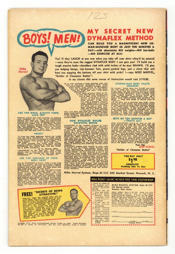 Starts Dec 22 Cover pencils by Jack Kirby, inks by Chic Stone. Thor reveals his secret identity to Jane Foster in "A World Gone Mad," script by Stan Lee, pencils by Jack Kirby, inks by Chic Stone; Thor upsets Odin again by declaring his love for Jane Foster; Don Blake reveals his secret identity to Jane, but she doesn't believe him; He stamps his cane and nothing happens because, unknown to him, Odin has removed the enchantment which allows him to become the God of Thunder; The Grey Gargoyle appears and attacks Don and Jane; They flee; Odin sends Honir the Hunter to aid Blake. Honir distracts the Gargoyle and grants Blake the ability to become Thor for 30 seconds, long enough to defeat the Gargoyle; Balder appearance. "Tales of Asgard" back-up: "The Boyhood of Loki!" Script by Lee, pencils by Kirby, inks by Vince Colletta; Origin of Loki continued; Thor defends Loki after Loki is caught engaging in mystical mischief; Loki resents Thor's popularity and physical superiority vowing that, one day, Thor must be destroyed! The Merry Marvel Marching Society promo. 36 pgs., full color. Cover price $0.12.