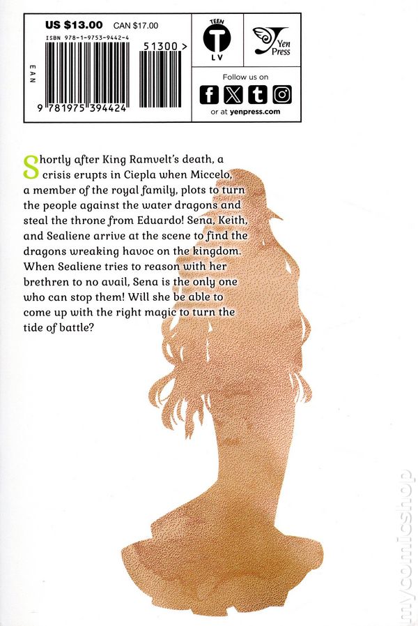 Volume 6 - 1st printing. Written by Tail Yuzuhara. Art and cover by sora. Translated by Timothy Gifford. Thanks to the marquess's scheme to steal the throne, the water dragons have gone on a rampage. The Kingdom of Ciepla's internal conflicts only continue to expand. What will it take to turn the tide of the battle?? Softcover, 5-in. x 7-in., 160 pages, B&W. Teen Cover price $13.00.