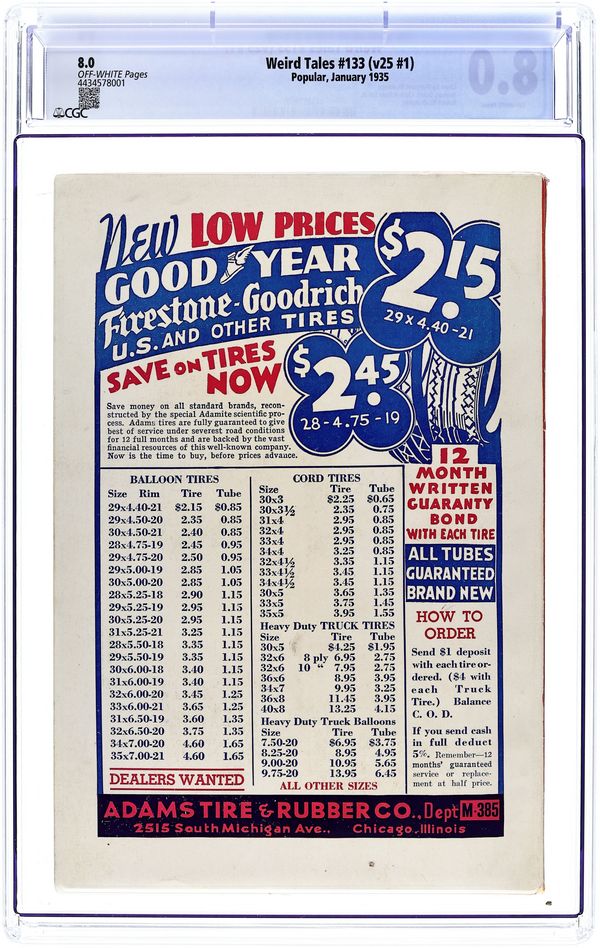 NOTE: This is the very 1st appearance in print of The Call of Cthulhu, and the very first in print mention of Lovecraft's most infamous creation - Cthulhu. Cover price $0.25.If you add this item to your want list, we will email you when it becomes available.
