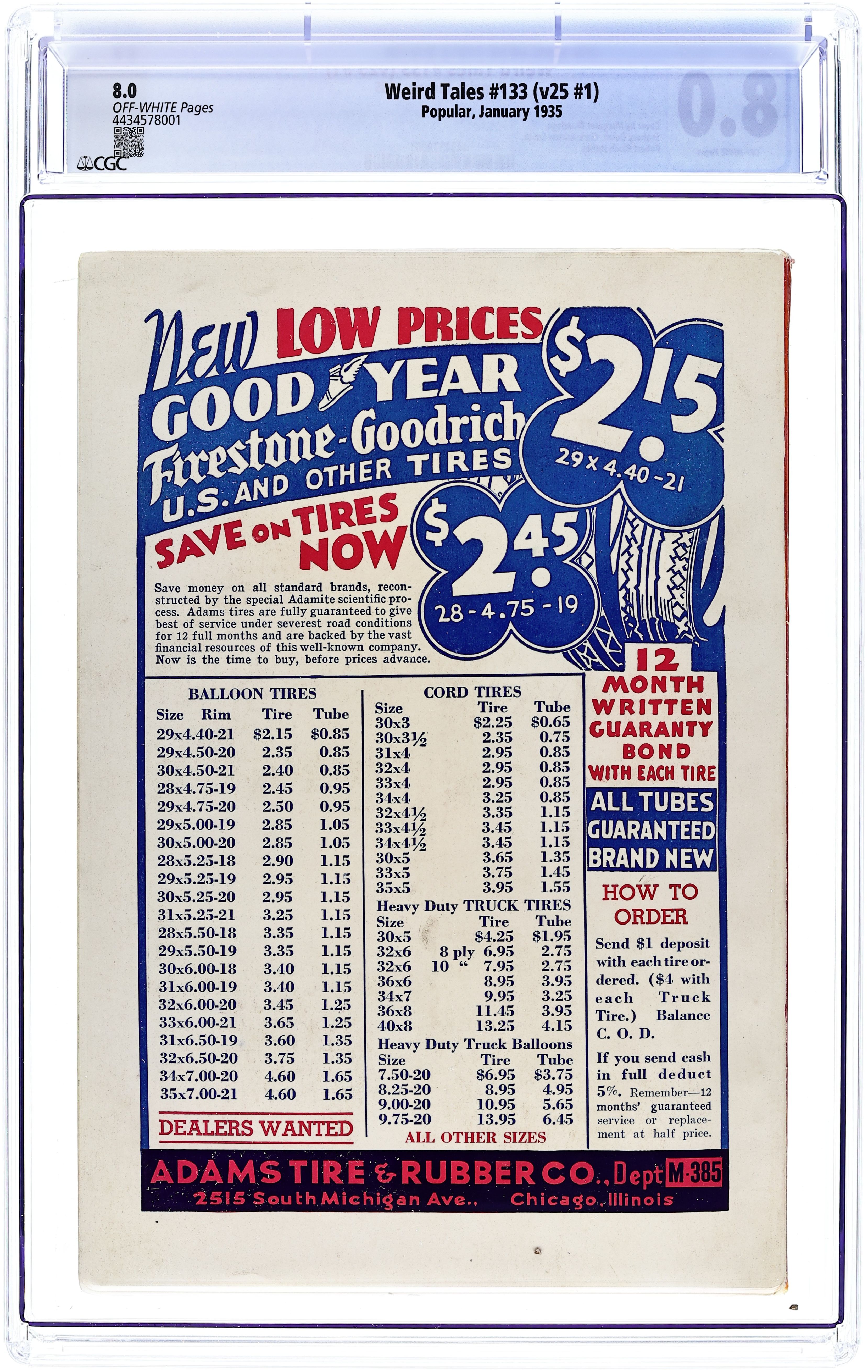 Ends Apr 27 10:08 PM CST Bid History 4 bids Current Bid $13 Your Secret Max Bid If you'd like to bid, please log in or register. Volume 25, Issue 4 - April 1935. Edited by Farnsworth Wright. Horror and Fantasy stories in the pulp style. 6.75-in. x 10-in.; 128 newsprint pages, text (with B&W illustrations). Cover price $0.25.