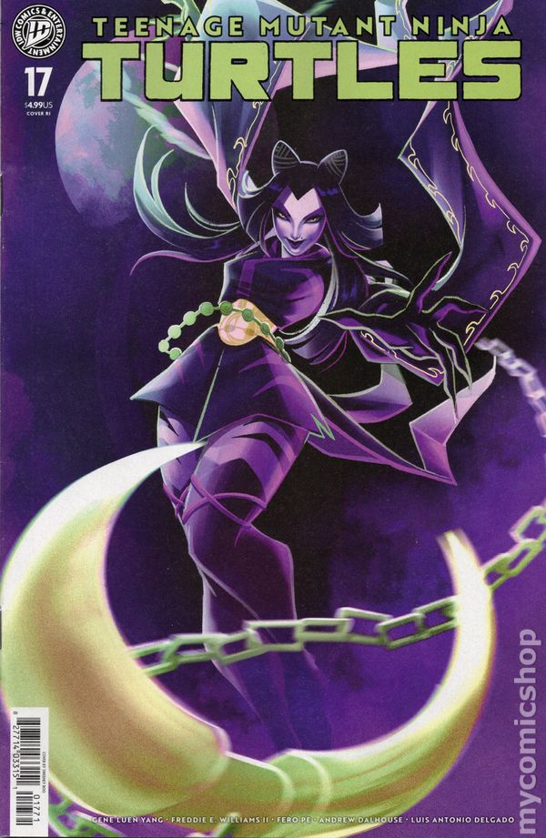 (W) Gene Luen Yang (A) Freddie E. Williams II (CA) Kevin Eastman; Ben Bishop Father and sons, together again! The Turtles are overjoyed to have Splinter back with them, but there are dark things lurking in the shadows—a mysterious new magic-wielding foe disrupts the family reunion! The Turtles also learn who Ujigamis next target is, and the race is on to save one of their greatest allies! 32 pages, full color, not rated. Cover price $4.99.