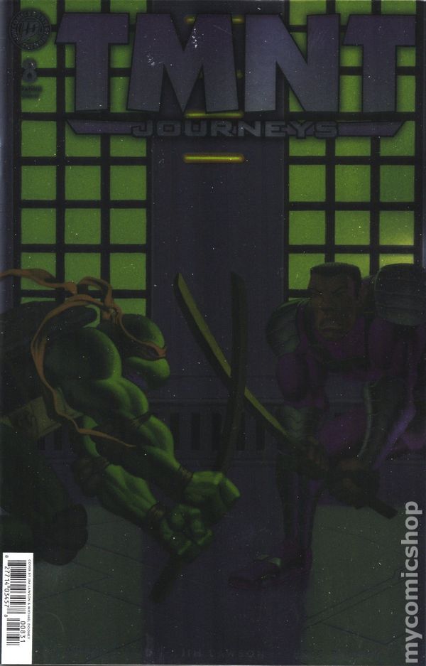 Limited 1 for 10 Retailer Incentive Variant Foil Cover. Written by Peter Laird. Art by Jim Lawson. Cover by Michael Dooney; Peter Laird. A LOST PIECE OF TMNT HISTORY BROUGHT BACK TO LIGHT!Twenty four years ago legendary Teenage Mutant Ninja Turtles co-creator Peter Laird joined forces with Jim Lawson and the legendary talent at Mirage Studios to continue the epic journey of the Ninja Turtles in the fourth volume of their ongoing series. TMNT: Journeys reprints that epic series here for the very first time! The Ninja Turtles are growing up and facing off against new, frightening dangers that could tear the four brothers apart and change New York City forever. Meanwhile, April and Casey Jones prepare for the next step in their relationship as theyre expecting a baby. And Master Splinter trains with Shadow Jones for the dark forces threatening the family ahead. NOTE: This variant was originally issued with a protective white overlay attached to the book at the staples. This overlay may or may not be present on copies listed here. 32 pages, full B&W. Cover price $12.99.
