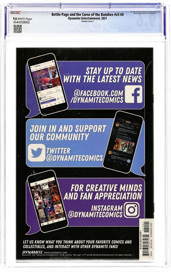 Published Sep 2021 by Dynamite Entertainment.Bettie Page The Curse of the Banshee (2021 Dynamite) 4I CGC 9.6 Black Bag Variant