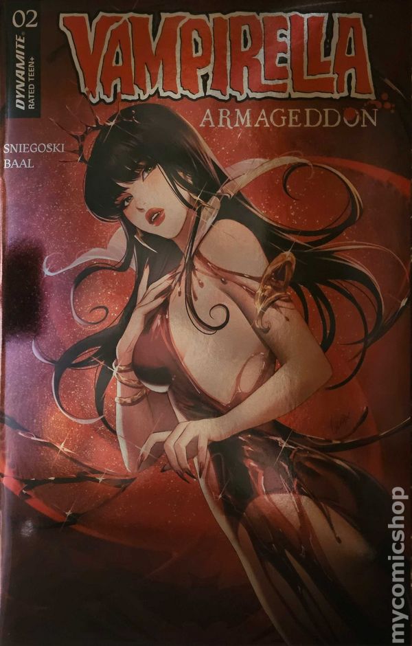 Written by Tom Sniegoski. Art by Kewber Baal. Cover by Francesco Mattina. OUT OF THE FRYING PAN - AND INTO THE HELLFIRE! Things in Sepulcher City go from bad to apocalyptic as the forces of Chaos step up their all-out assault on the Menagerie. As usual, it falls on the supernatural melting pot's lone defender, Vampirella, to try and keep order from descending into anarchy - something that becomes significantly harder after her own descent into the Infernal Realm! The devilishly talented team of writer TOM SNIEGOSKI and artist KEWBER BAAL fan the narrative flames in Vampirella: Armageddon #2 - stoked by superheated covers from FRANCESCO MATTINA, LESLEY 'LEIRIX' LI, JOSEPH MICHAEL LINSNER, and fiery cosplay from LAUREN DELOREAN! 32 pages, full color. Rated T+ Cover price $4.99.