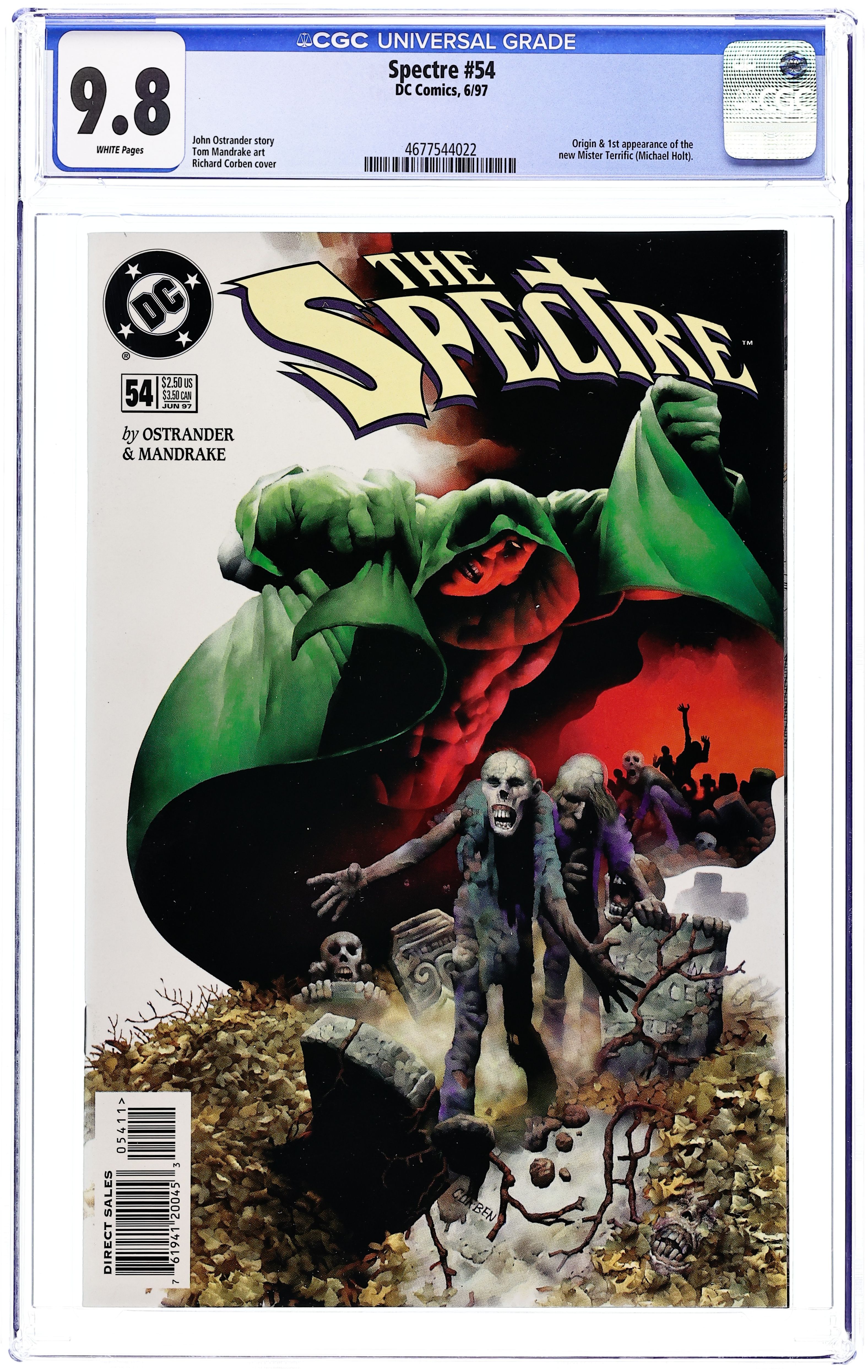 Cover by Richard Corben. "The Haunting of Jim Corrigan. Part 3: Atonement". Part 3 of 5. Story by John Ostrander. Art by Tom Mandrake. First Appearance of Michael Holt/Mr. Terrific. Michael Holt has nothing to live for…..until he meets the Spectre. Relating the tale of how the Justice Society tracked down the killer of the original Mr. Terrific, the Spectre convinces Holt to take on the role. This issue ties up threads left over from Justice League of America (1960 1st series) numbers 171 and 172. 36 pages. Full color. Cover price $2.50.