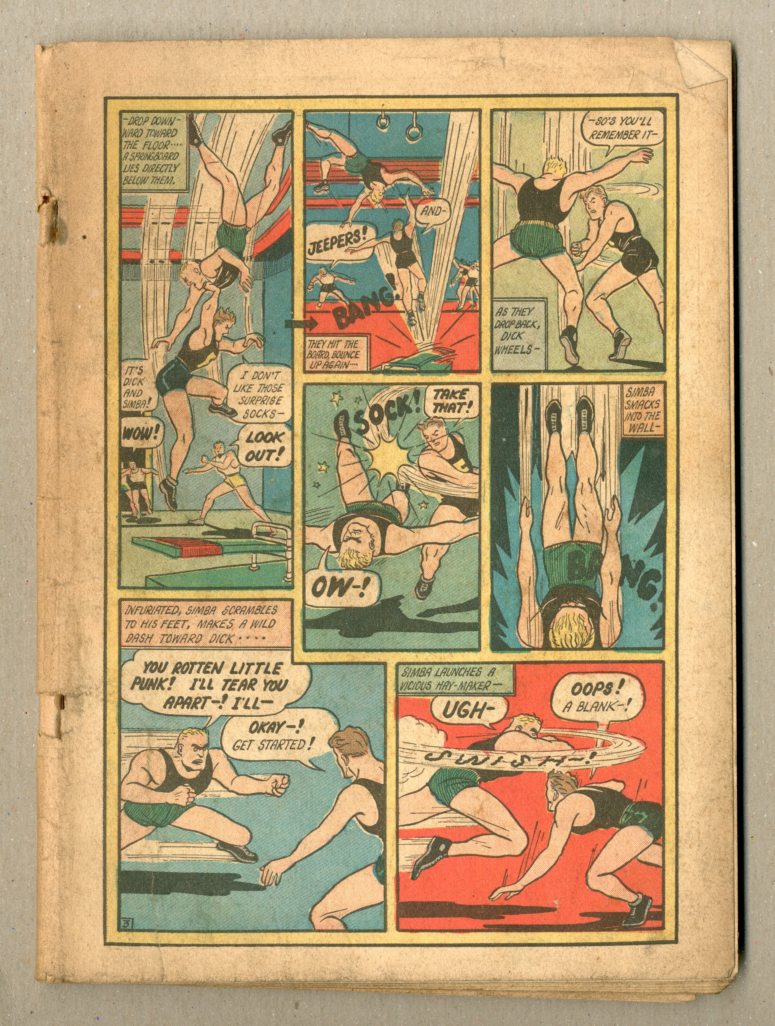 Edited by David Adams. Cover by Bill Everett. Stories by Bob Davis, John Daly, Malcolm Kildale, Harry Ramsey, Ray Gill, Paul Gustavson, Jack A. Warren, Milt Hammer, Henry Kiefer, Bill O'Connor, Ben Flinton, Leonard Sansone, and Alan Mandel. Dick Cole battles Simba Karno. Sergeant Spook in The Case of the Zombies and the Crazy Doctor Zorka. The Twister battles Tony the Tornado. Blue Bolt visits the outer world. 68 pages, $0.10. Cover price $0.10. Grade: Coverless explanation of grade Condition: Used (collectible)