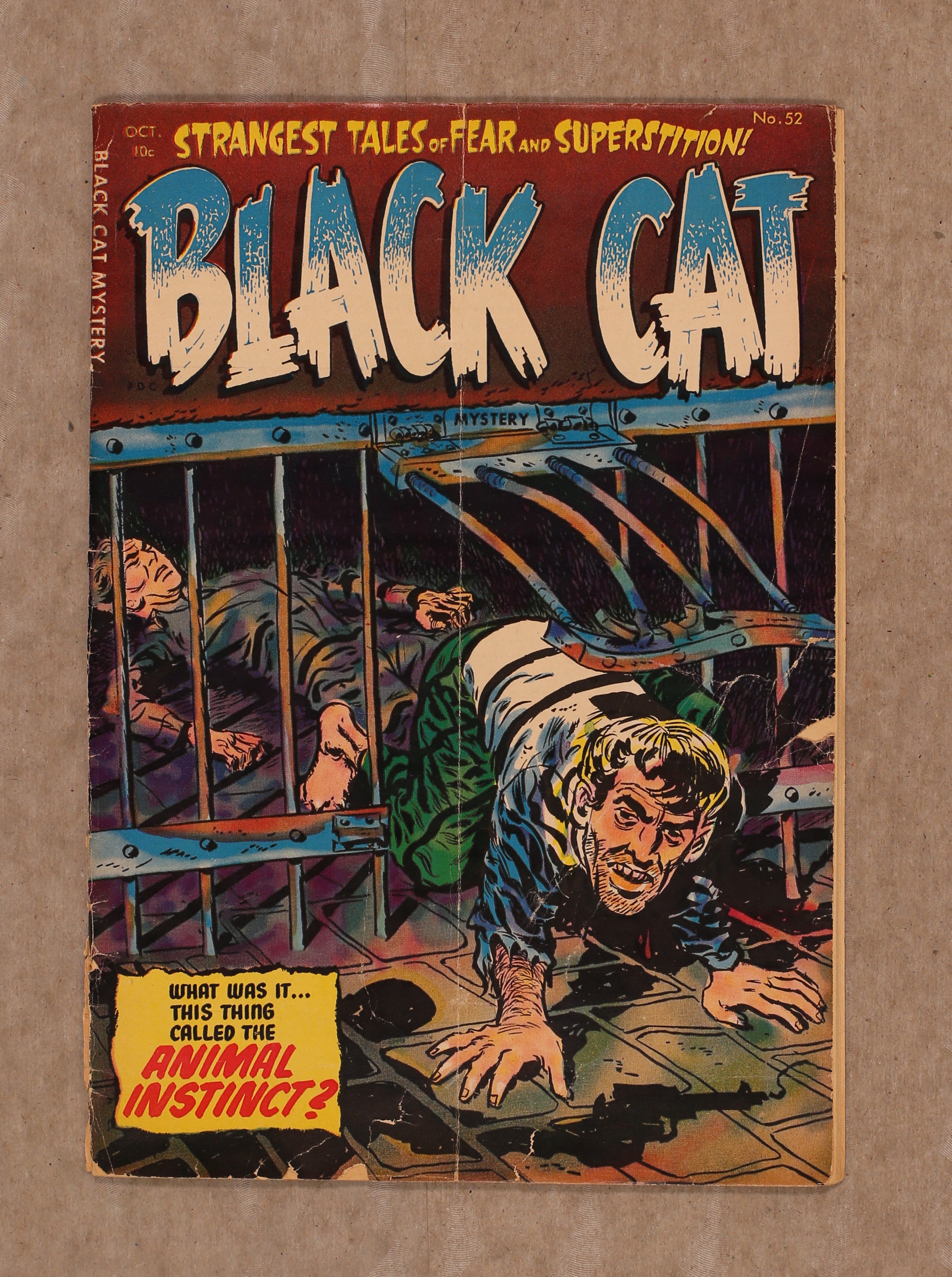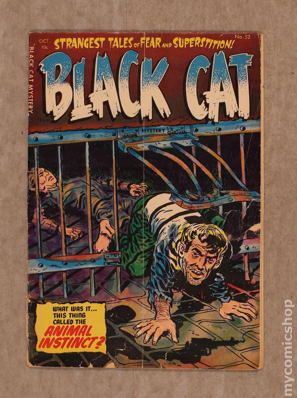 Stories and art by Bob Powell, Howard Nostrand, Rudy Palais, Manny Stallman, and Joe Certa. Former superhero comic Black Cat becomes a showcase for Harvey's unique brand of pre-Code horror. Sarah's uncle brings a macabre trophy back from India - a severed hand that grants wishes, in a pastiche of the horror classic "The Monkey's Paw." A wife-killer is pursued by the corpse of his victim. Halloween partiers are forced into a macabre scavenger hunt by a strange creature. Plus a vintage ad for a "Savage Australian Boomerang." Hand of the Yogi; Jack of Horror; Halloween Nightmare; Shadows on the Tomb; The Return of the Mummies; Mark of the Vampires. 36 pages, full color. Cover price $0.10. Grade: FR/GD 1.5 explanation of grade Condition: Used (collectible)