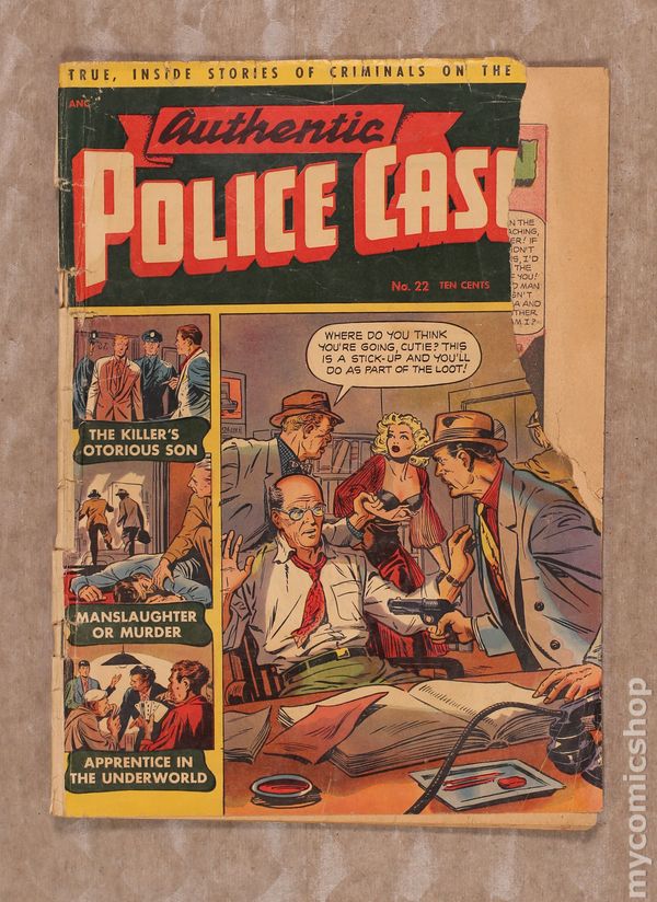 Cover by Matt Baker. Stories and art by Antonio Canale, Antonio Toldo, and Enrico Bagnoli. Pre-Code crime comics from St. John with an above-average lineup of artists. After Red Daughterty goes to the chair, his son "Little Danny" grows up hating the law, and determined to strike back at the world. A killer and his surviving victim tell different stories as to whether the killing was self-defense or murder. A stolen-goods fence becomes a powerful crimelord by turning compulsive gamblers into his patsies. Cover by good-girl art legend Matt Baker. Lost River Manhunt; Killers Son; Manslaughter or Murder?; The Fence; Flaming Terror; Apprentice in Crime; Fun Time. 36 pages, Full Color. Cover price $0.10. Grade: FR 1.0 explanation of grade Condition: Used (collectible)