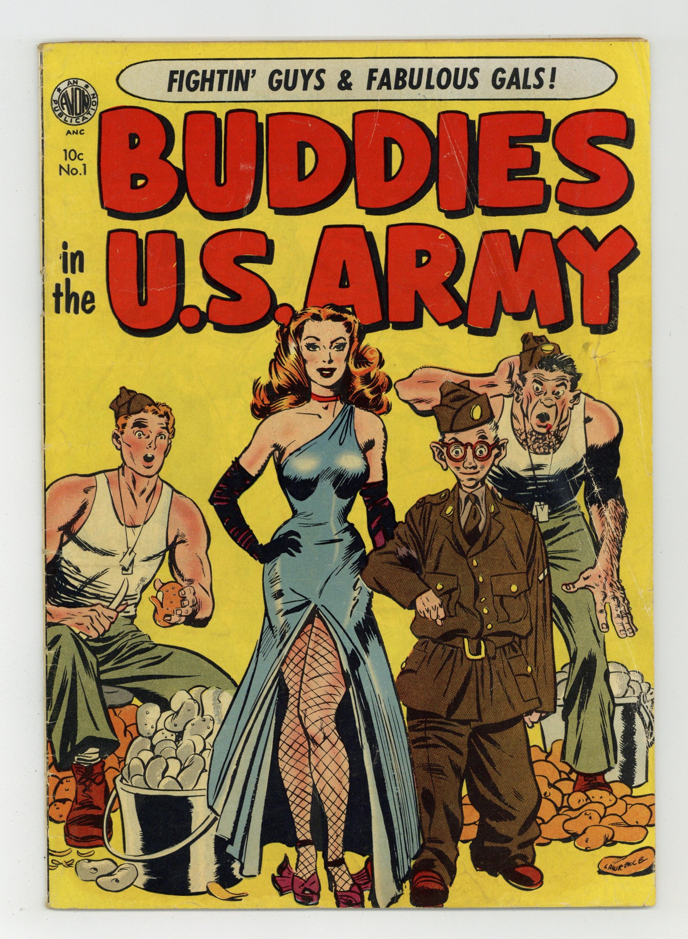 Cover by Mort Lawrence. Art by Mort Lawrence. Military comedy-drama typical of the time, featuring the hijinks of enlisted men Jon Wendall and Mike McClusky and the women they pursue. Wendall and McClusky become lifelong friends in the barracks, as the only thing they enjoy more than a good fight is fighting over the same woman; Wendall and McClusky risk their lives on the front to bring back tokens for the nurse they both desire; The boys get involved with communist agents in Tokyo. Includes an ad for a U.S military-style combat judo training manual. When Pal Met Pal; Operation Love!; G.I. Raffle; Rendezvous with Death!; U S O Commando; Dangerous Dilemma. 32 pages, Full Color. Cover price $0.10. Grade: GD+ 2.5 explanation of grade Condition: Used (collectible)