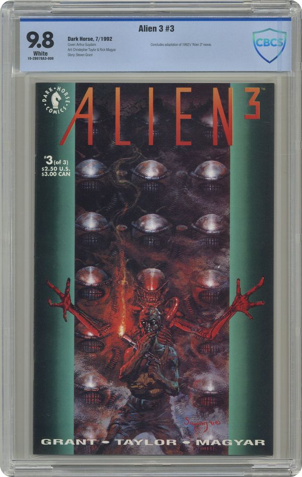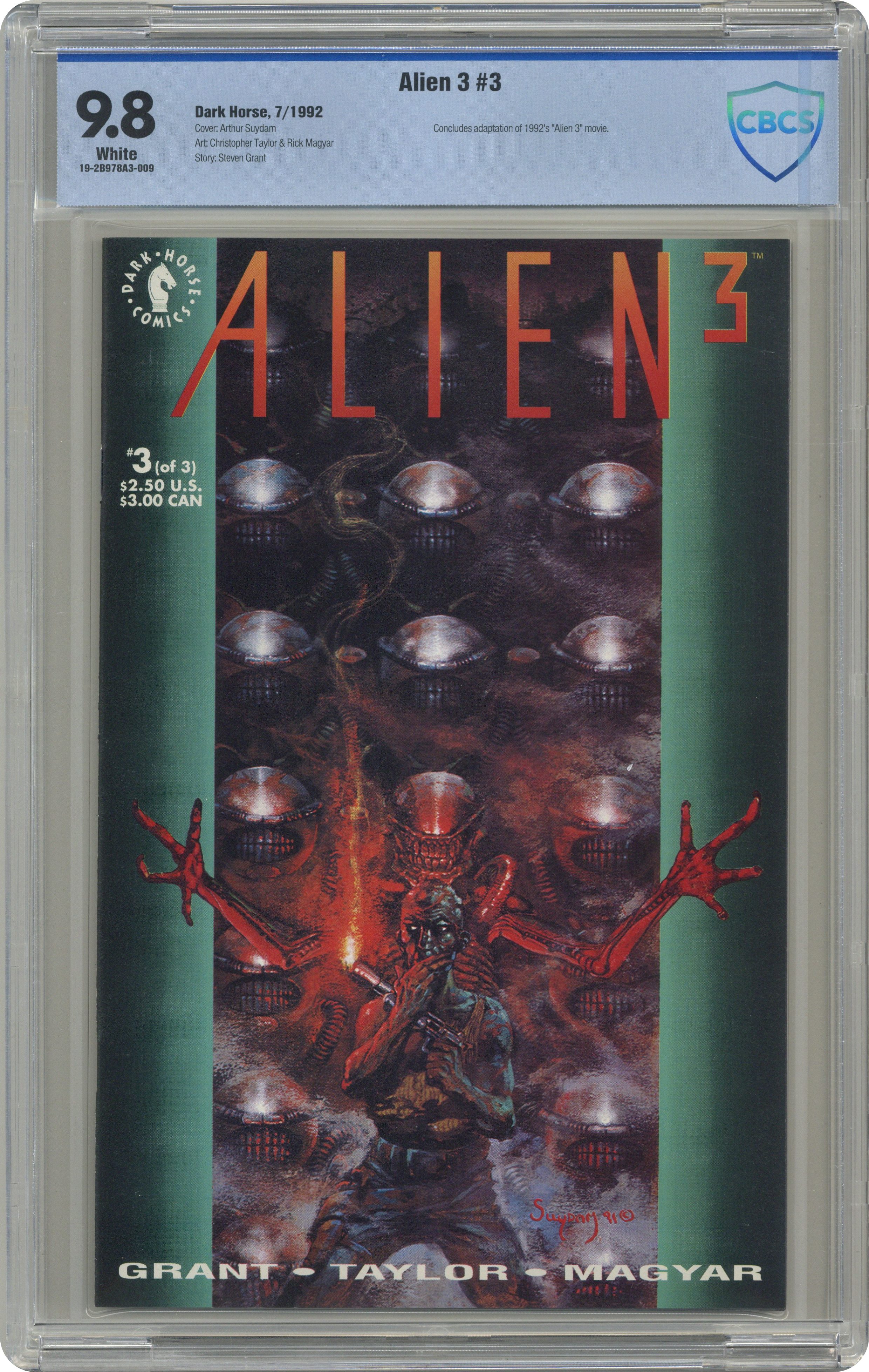 Written by Steven Grant. Art by Christopher Taylor and Rick Magyar. Cover by Arthur Suydam. Ripley finds that the most horrifying thing about fighting Aliens may actually be the battle within. FC Cover price $2.50. Grade: CBCS 9.8 explanation of grade Condition: Used (collectible)