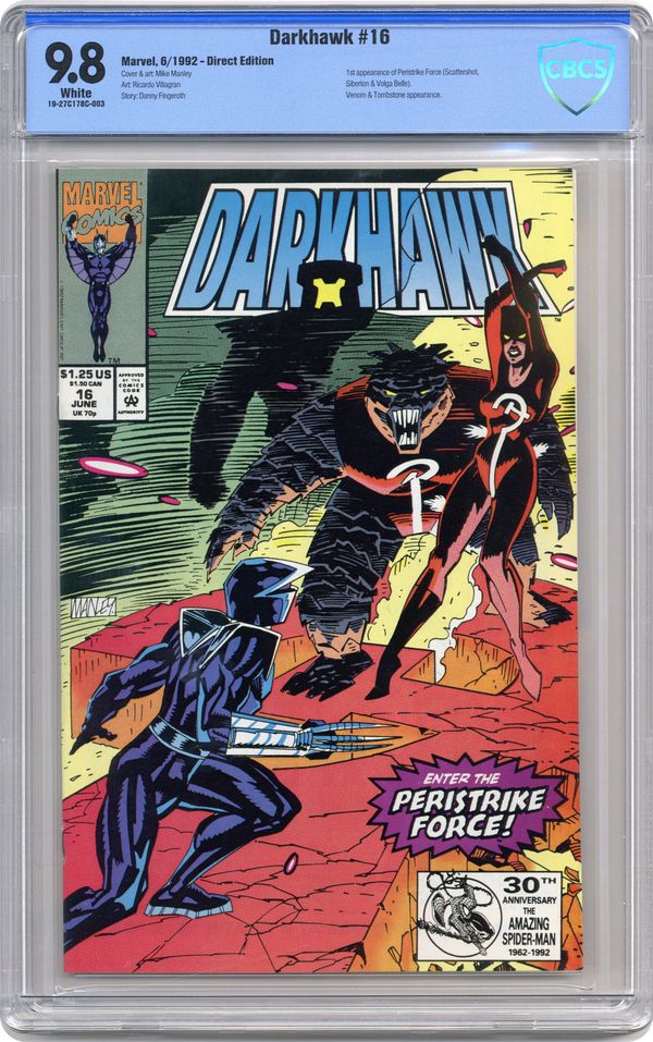 Cover pencils by Mike Manley. Brave New World, script by Danny Fingeroth, pencils by Mike Manley, inks by Mike Manley and Ricardo Villagran; Jason Powell returns home and the Powell family goes to Mike Powell's funeral; Chris becomes an intern at WRCK; The Peristrike Force attacks Midtown High School during a conference on superhuman youth. 36 pgs. $1.25. Cover price $1.25. Grade: CBCS 9.8 explanation of grade Condition: Used (collectible)