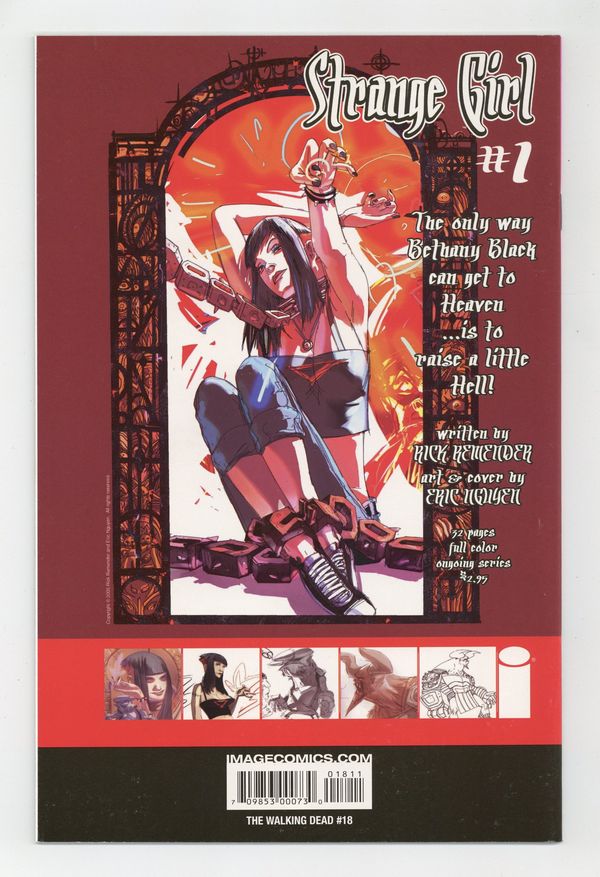 on sale 03.02 $2.95 monthly ongoing series black & white 32 pages written by ROBERT KIRKMAN art by CHARLIE ADLARD cover by TONY MOORE CONCEPT: An epidemic of apocalyptic proportions has swept the globe, causing the dead to rise and feed on the living. In a matter of months, society has crumbled: There is no government, no grocery stores, no mail delivery, no cable TV. In a world ruled by the dead, we are forced to finally begin living. THIS ISSUE: Rick has gone over the edge. He's alienating everyone around him ? people he's come to know and trust, his family, his friends. Rick is becoming more and more isolated within the group. Where he goes from here will test the limits of his humanity. RETAILER WARNING: MAY NOT BE SUITABLE FOR ALL AGES Cover price $2.95. Grade: VF/NM 9.0 explanation of grade Condition: Used (collectible)