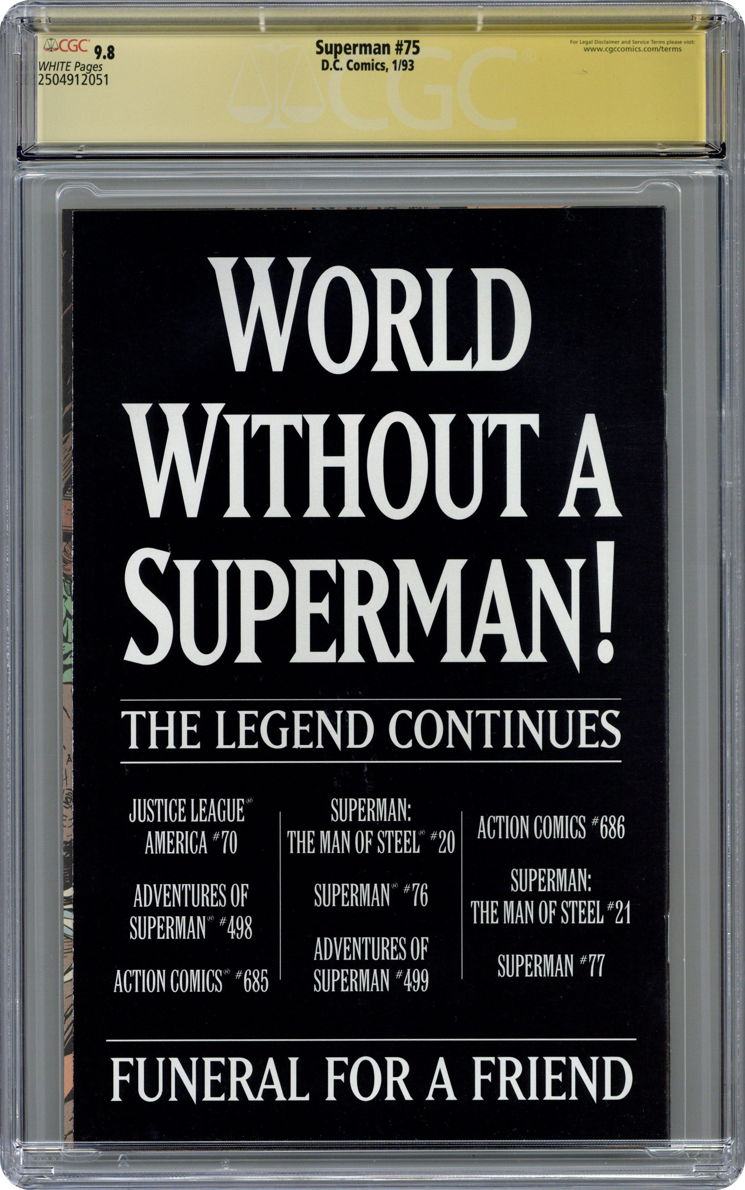 Superman (1987 2nd Series) 75D CGC 9.8 SS Direct Variant 1st Printing