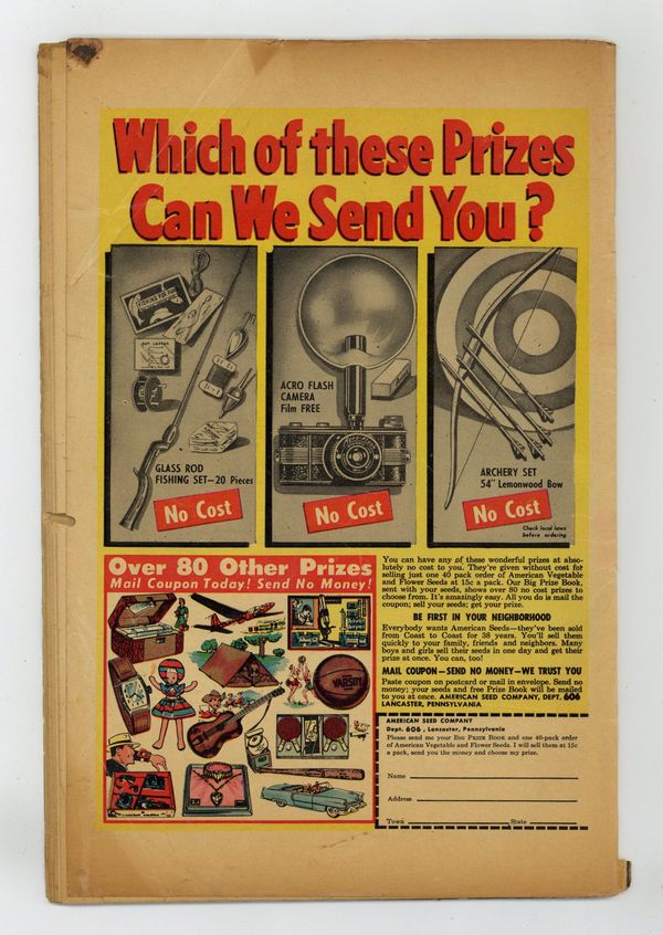 Cover art by Sol Brodsky. The Man Who Ran Away!, art by Bob Forgione. One World at a Time!, art by Joe Orlando. The Stone text story. The Mysterious Border, art by Robert Sale. Look Out Below, art by Bob Powell. Safari In the Sky!, art by Ed Winiarski. Take A Giant Step, art by Paul Reinman. 36 pgs. $0.10. Cover price $0.10. Grade: GD 2.0 explanation of grade Condition: Used (collectible)