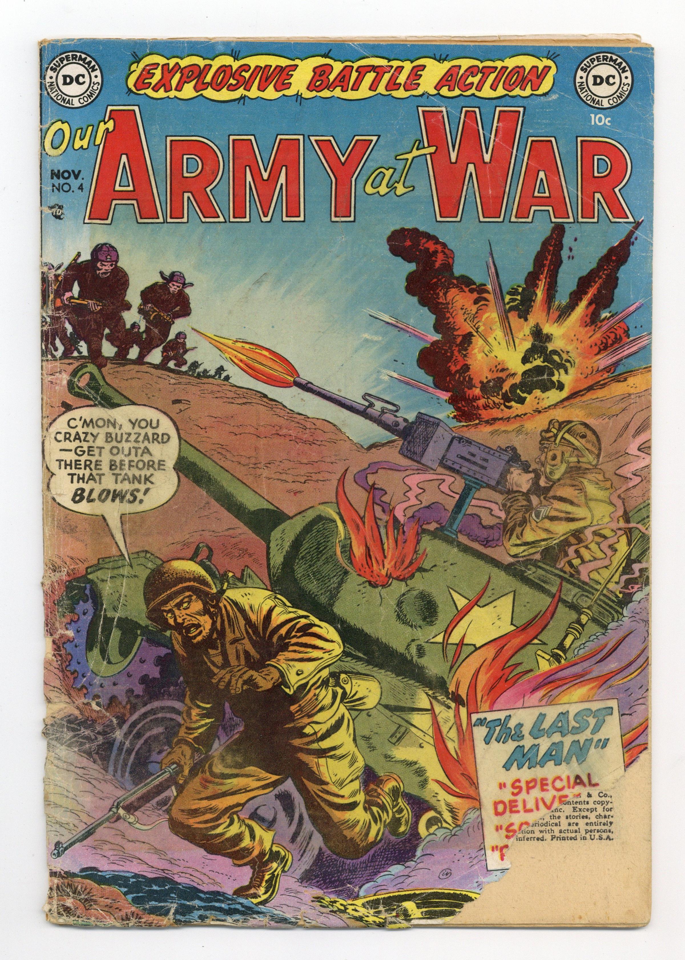 Ended Oct 10 2023 Winning Bid $37 Cover art by Irv Novick. "Last Man," script by Bob Kanigher, pencils by Irv Novick, inks by Bernard Sachs; At first glance he looked like any other dogface fighting up and down the 38th parallel; He wore the same uniform, ate the same food, fired the same weapons - and yet, there was something about him that marked him apart from every soldier. "Replacement," script by Hal Kantor, art by Bernie Kriegstein; In a combat zone, there are three things a man worries about: his life, equipment, and the time when he will be rotated back home; The first two he can take care of himself - the last depends on his replacement! "Special Delivery," script by Hal Kantor, pencils by Ray Schott, inks by Bob Lander. "Soft Job," script by Hal Kantor, pencils by Jerry Grandenetti, inks by Joe Giella. 36 Pages, Full Color. Cover price $0.10. Grade: FR/GD 1.5 explanation of grade Condition: Used (collectible)