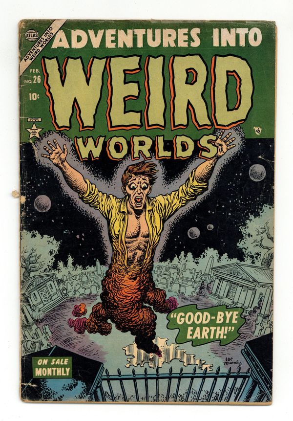 Cover art by Joe Maneely. Good-Bye Earth, art by Paul Reinman; A man is confronted by an alien disguised as a human who reveals to him that he is actually one of them, deep undercover as a spy; He gives the man an injection that will bring his true nature to the surface in a matter of hours. The Robot that Hated, art by Al Eadeh; A scientist builds a robot attuned to his emotional impulses so that it kills a woman who rejected his proposal. When he demonstrates love towards the robot later that evening, it crushes him in a hug. The Edge of Madness, art by Tony DiPreta; A man and the werecreature half of his nature both are in love with the same woman and consider each other rivals, so when the evening transition between the two of them occurs, they fight each other to the death using knives to lacerate the body they both share. Beware of the Ghost text story. Menace from Mars!, art by Chuck Winter; A draft dodger heads for Mars to avoid being inducted into Earth's army, but the Martians are preparing for war as well, and since the Martians are not choosy the dodger and his pals get inducted into their army. The Dead, art by Dick Ayers; Passive zombies return to find that they are not wanted by their relatives and so they sadly leave. 36 pgs. Cover price $0.10. Grade: GD 2.0 explanation of grade Condition: Used (collectible)