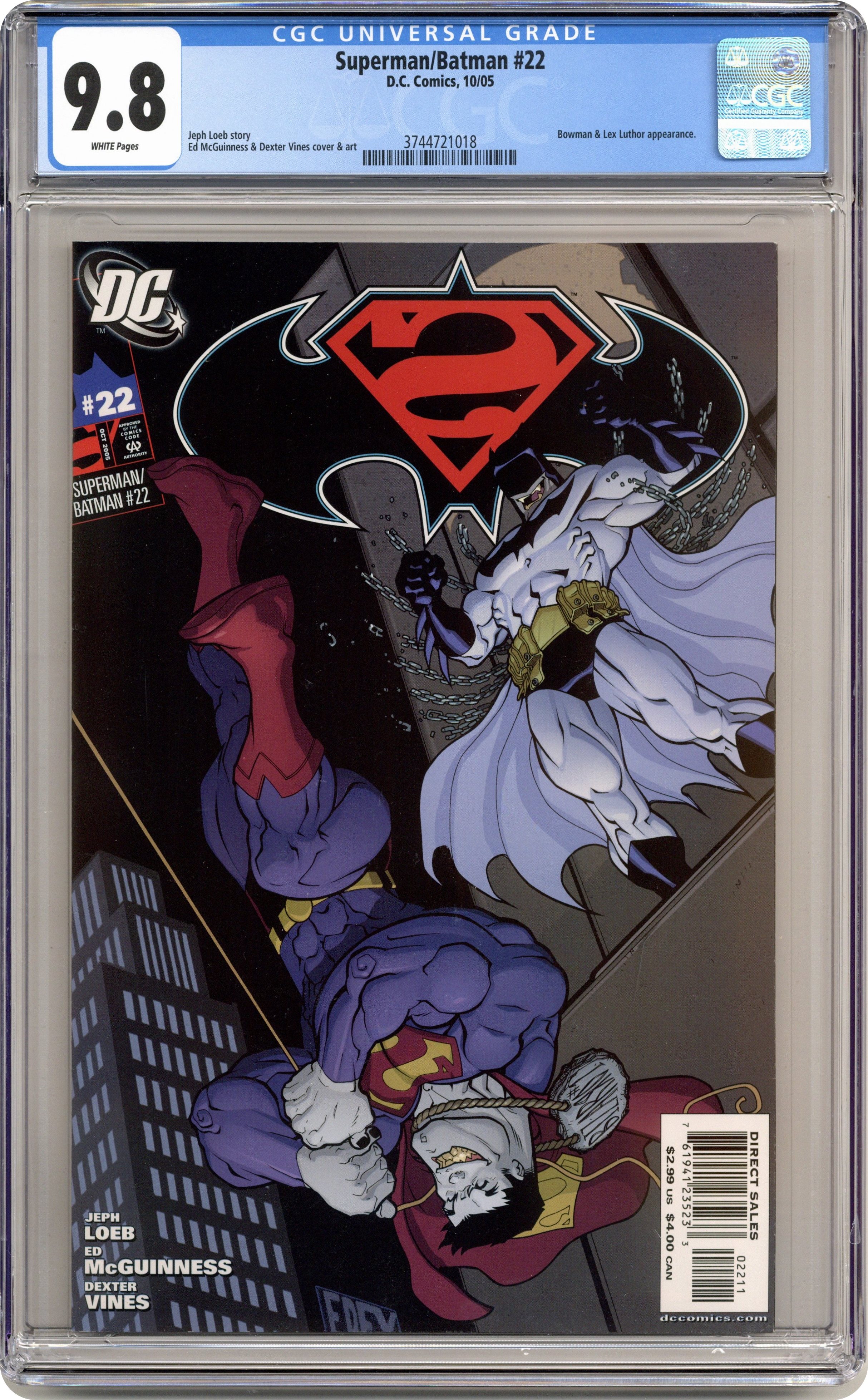 Ended Feb 26 2024 Winning Bid $43 Written by Jeph Loeb Art and cover by Ed McGuinness & Dexter Vines. The creative team-supreme writer Jeph Loeb and artists Ed McGuinness & Dexter Vines ratchet up the intensity in Part 3 of the 6-part "With a Vengeance!" After revealing the mysterious puppet master who has sent the Maximums after Superman and Batman, the World's Finest heroes make a daring escape! But they'll never escape alive when they come face to face with...themselves? It can't get more lethal than when they travel "All Across the Universes!" Minus...not introducing the startling Bizarro and Batzarro! Retailers please note: This issue is resolicited. All previous orders are cancelled. On sale August 31 ? 32 pg, FC, $2.99 US Cover price $2.99. Grade: CGC 9.8 explanation of grade Condition: Used (collectible)