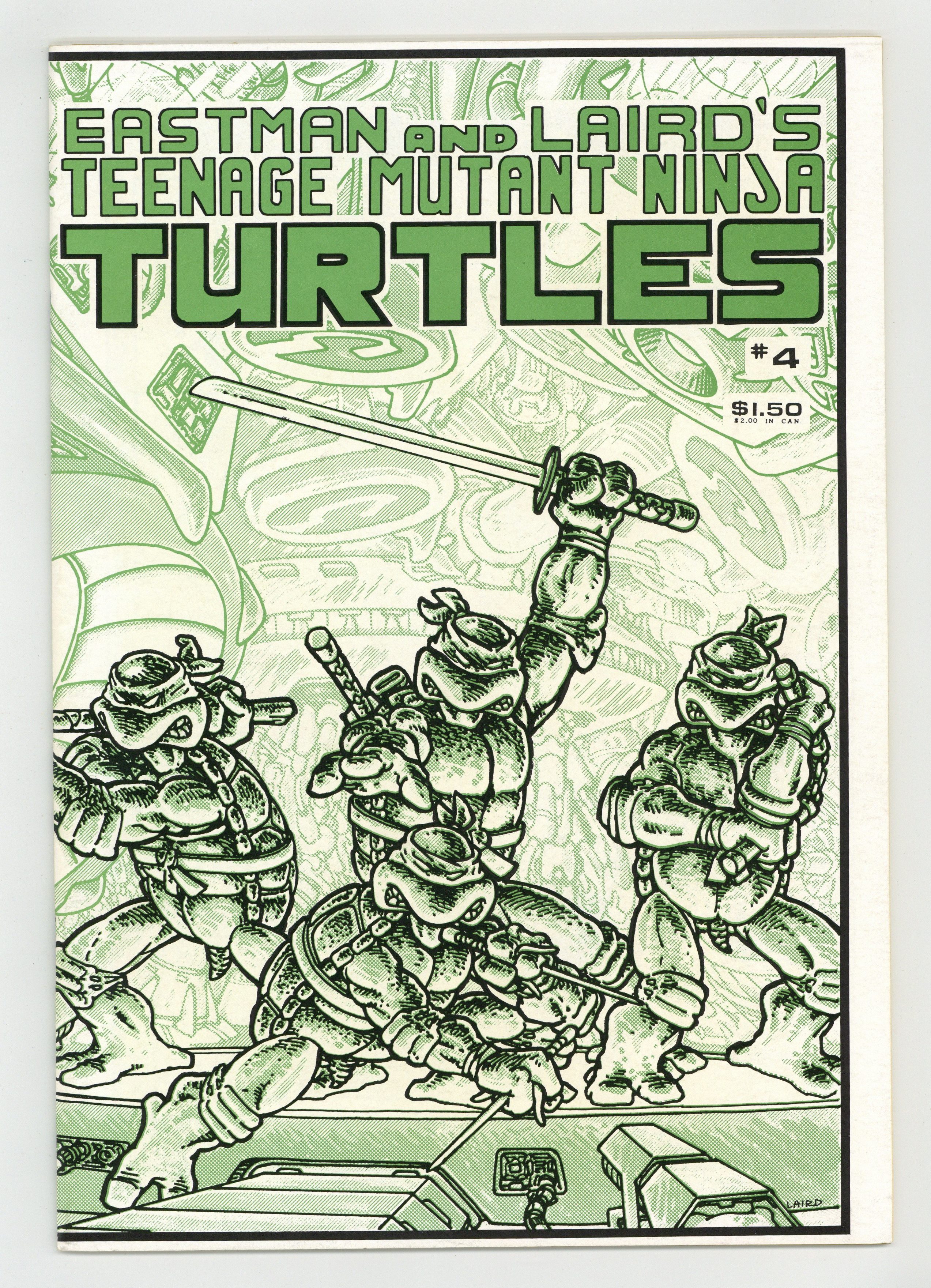 First printing. According to Overstreet, this issue has one additional printing, which can be identified as such on the inside cover. The original series that introduced the Turtles to the world. Searching for Splinter, the Turtles encounter the alien androids known as the Utroms. Story, art and cover by Kevin Eastman & Peter Laird. Final issue in magazine format; series continues in comic format as Teenage Mutant Ninja Turtles (1985). Black and white; 40 pages. Cover price $1.50. Grade: VF 8.0 explanation of grade Condition: Used (collectible)