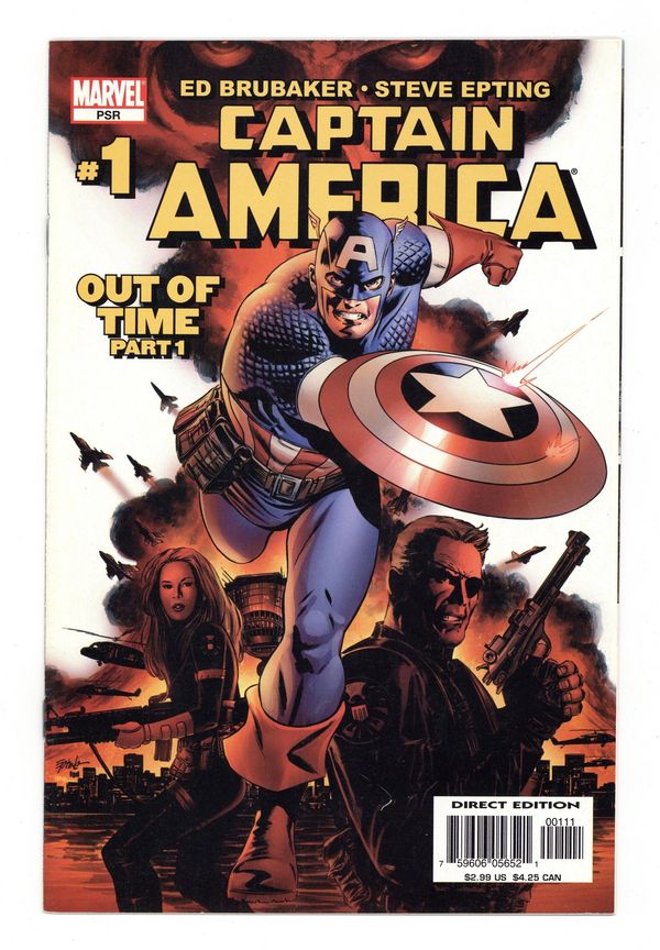 1st cameo app. of Winter Soldier. Winter Soldier: Part 1.1 - Out of Time: Part 1 of 6 - Written by ED BRUBAKER Art & Cover by STEVE EPTING It's a new beginning as four-time Eisner-nominated Best Writer Ed Brubaker makes his Marvel debut, joined by white-hot artist Steve Epting! As the new regular creative team, they will take Cap's life in directions fans will never see coming! In just this first issue, the Red Skull lays the groundwork for his most devastating attack ever on Captain America and the land he holds dear...and with the Cosmic Cube in his possession, how can Cap hope to stop him? Find out in the shocking twist-ending that will have everybody in the industry talking! 32 PGS./ MARVEL PSR NOTE: First partial/Cameo appearance of Winter Soldier. First full appearance is in issue #6 Cover price $2.99. Grade: FN 6.0 explanation of grade Condition: Used (collectible)