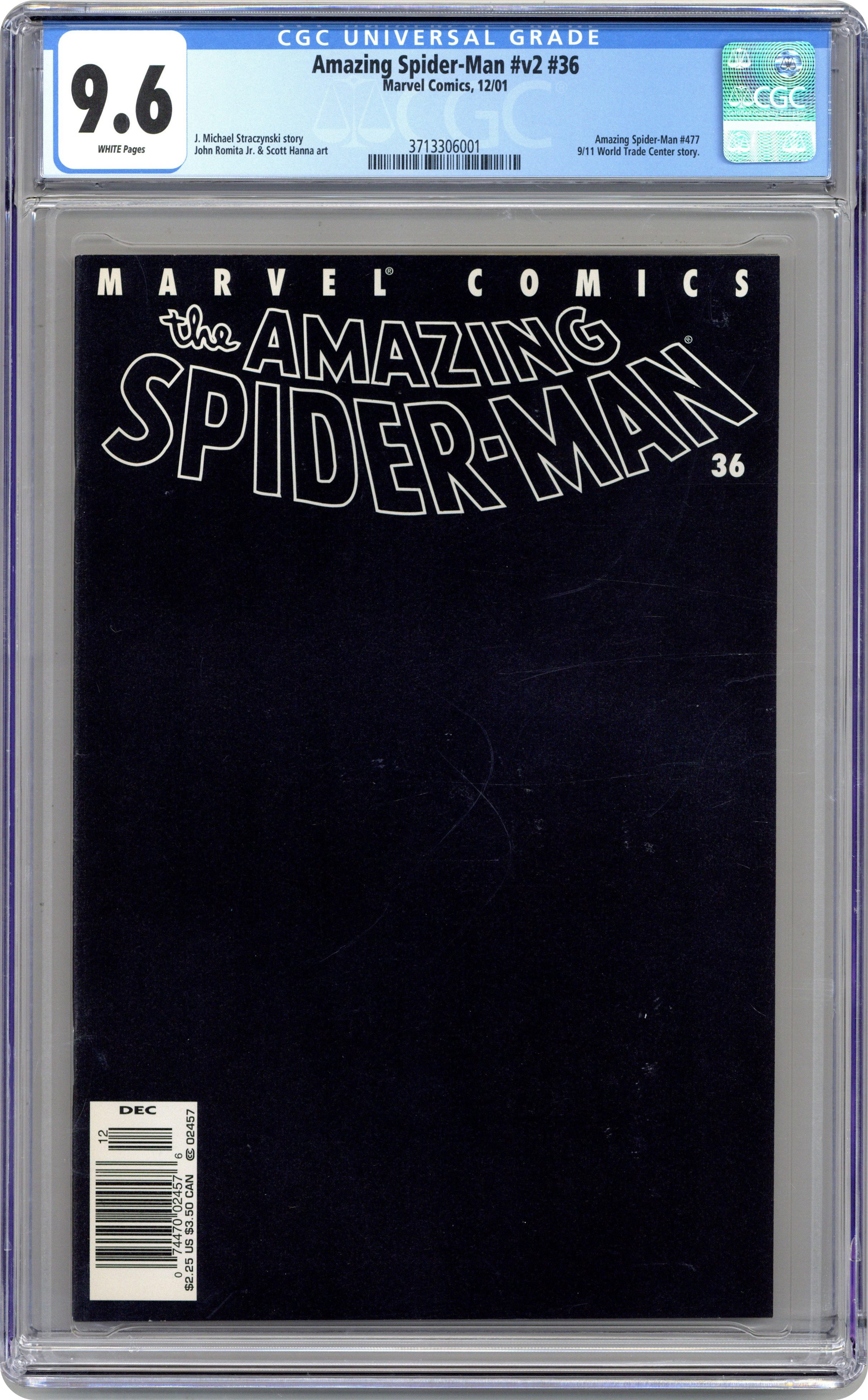 Ended Feb 19 2024 Winning Bid $84 Newsstand Edition. Black Cover Sept. 11th issue. Michael Straczynski/John Romita Jr./Scott Hanna. (Marvel PG) 2.25 36 pgs. Cover price $2.25. Grade: CGC 9.6 explanation of grade Condition: Used (collectible)