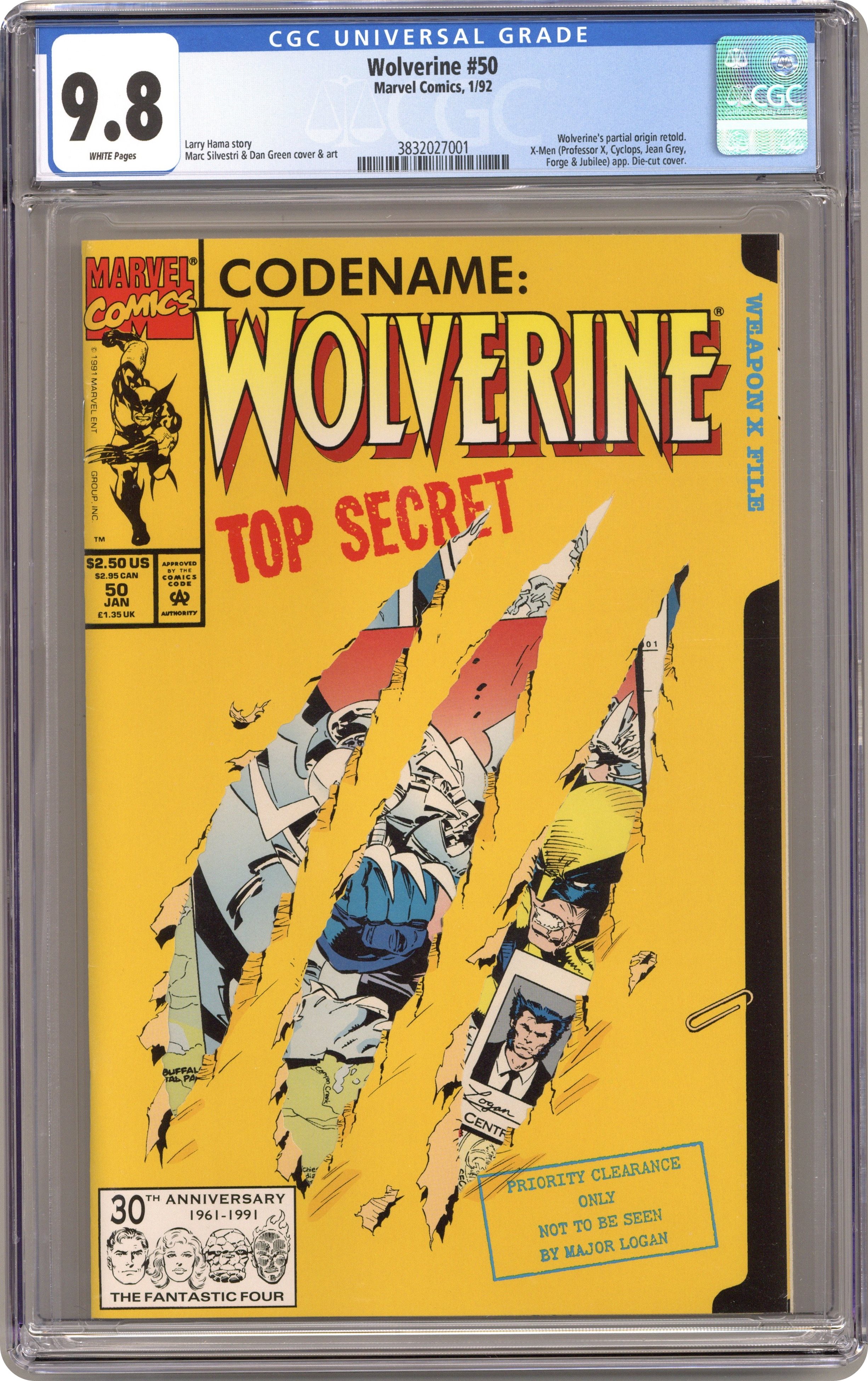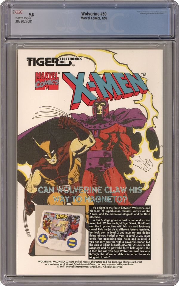 Direct Edition. Shiva Scenario: Phase 3 of 3 - "Dreams of Gore!" Guest-starring the X-Men. Written by Larry Hama. Art by Marc Silvestri and Dan Green. Wolverine discovers the location where his memory implants were created. But when he gets there he also discovers the mechanical monster known simply as Shiva, a robot programmed to hunt and kill renegade members of the Weapon X Program. Featuring pin-ups by Bill Sienkiewicz and Jim Lee. 64 pages, FC NOTE: The astounding sequel to Weapon X from Marvel Comics Presents (1988-1995) #72-84. Cover price $2.50. Grade: CGC 9.8 explanation of grade Condition: Used (collectible)