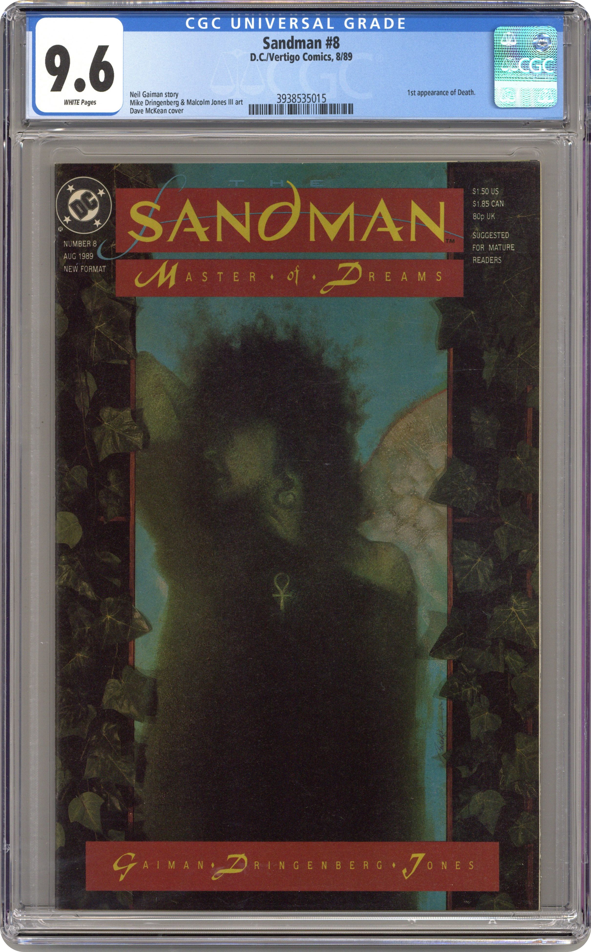 Neil Gaiman script and Dringenberg art. Standard edition that includes a 'publishorial' by DC editor Jeanette Kahn. First appearance of Death. 36 pages, full color. Cover price $1.50. Grade: CGC 9.6 explanation of grade Condition: Used (collectible)