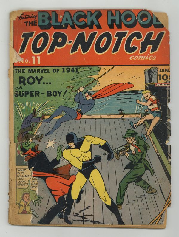 Cover by Al Camy. Edited by Harry Shorten. Stories by Cliff Campbell, Al Camy, Harry Shorten, Harvey Biern, Irv Novick, Nick Zuraw, Bob Wood, Lin Streeter, Ed Smalle, Joe Blair, and Bernard Klein (as Bobby King). Heroic tales of action and adventure—these are Top Notch Comics! 68 pages, full color. $0.10. Cover price $0.10. Grade: PR 0.5 explanation of grade Condition: Used (collectible)