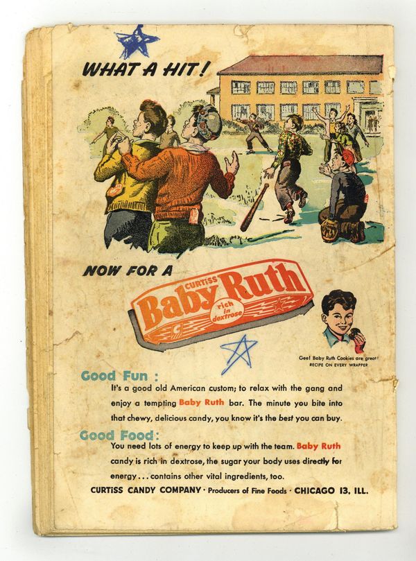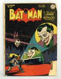 Cover by Jerry Robinson. "Calling Dr. Batman!", art by Jerry Robinson (as Bob Kane); Dr. King tries out his new radiotherapy machine on patient Jerry Marshall, and, while it is successful, its ray negatively affects a hospital worker, Lou Darrell, but not for the better. 1-page Casey the Cop story by Henry Boltinoff. "Hollywood Hoax!", art by Jerry Robinson; A group of criminals plan to steal an unreleased as yet film "Heart's Desire" from the movie set of "Crime Doesn't Pay", where Batman and Robin are in attendance to film a sequence. "Killing Doesn't Pay" text story by Al Singer. "The Joker Follows Suit!", art by Jerry Robinson; The Joker institutes a mad scheme to use the very symbols of Batman: the Bat-Signal, Batmobile and Batplane, against the Dark Knight detective that he calls "Make Crime Pay the Joker Way!" 52 Pages, Full Color. Cover price $0.10. Grade: GD- 1.8 explanation of grade Condition: Used (collectible)